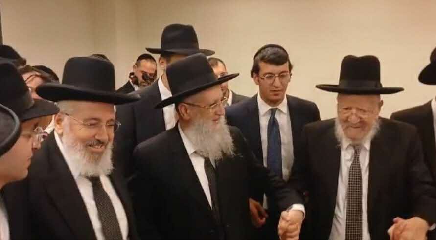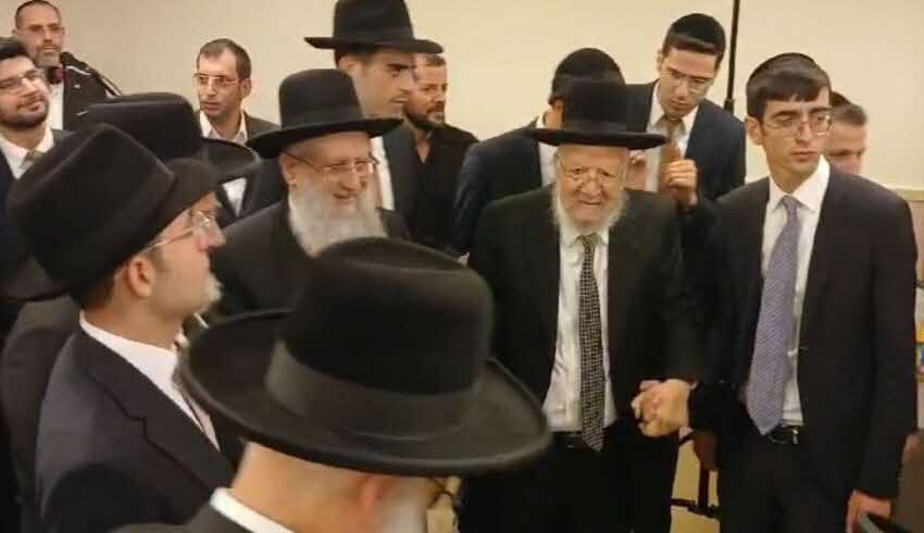 שמחת אירוסי נכד הגר"ש פרץ רו"כ "הדרת יוסף" עם נכדת הגה"צ רבי שמעון כהן זצ"ל מייסד מוסדות "תהילה לדוד - תורה אור"