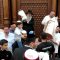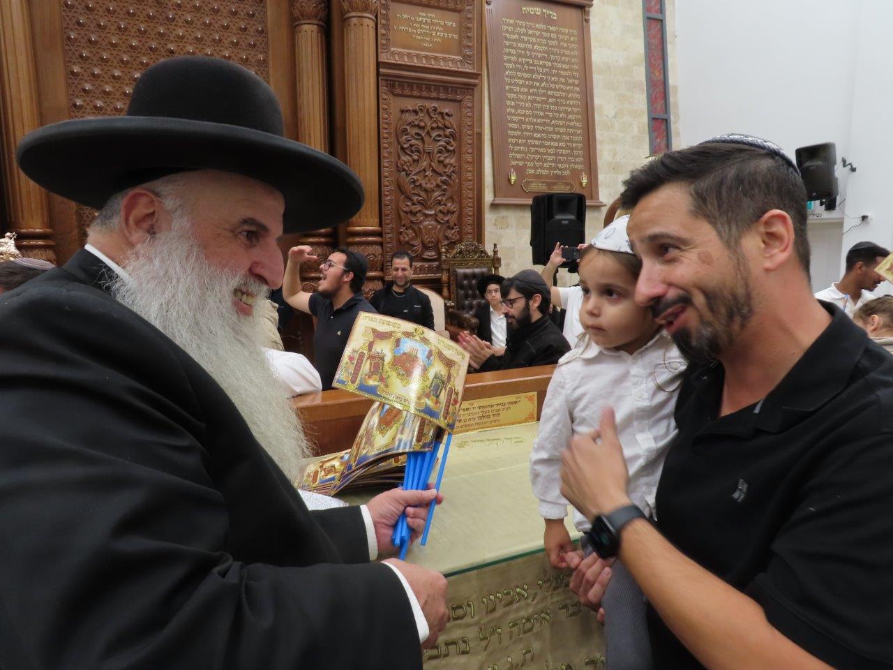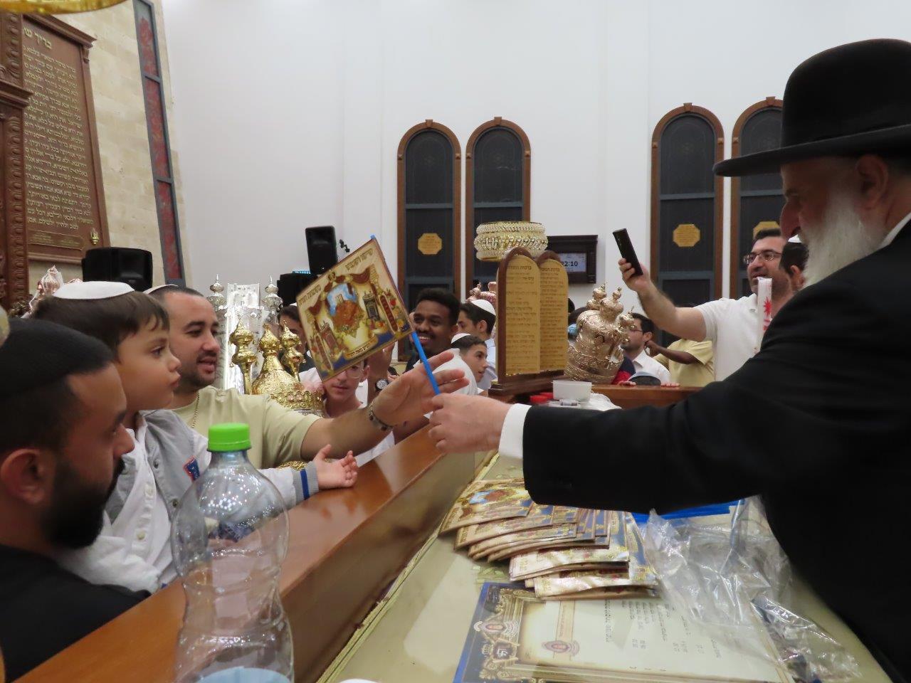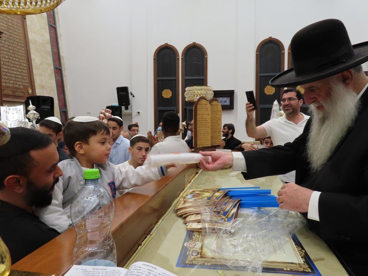 במהלך הריקודים, הרב אבוחצירא חילק לילדים דגלים ולפידים מאירים ומידי פעם זרק מלוא חופניים של סוכריות על ראשיהם של החוגגים לכבודה של תורה.