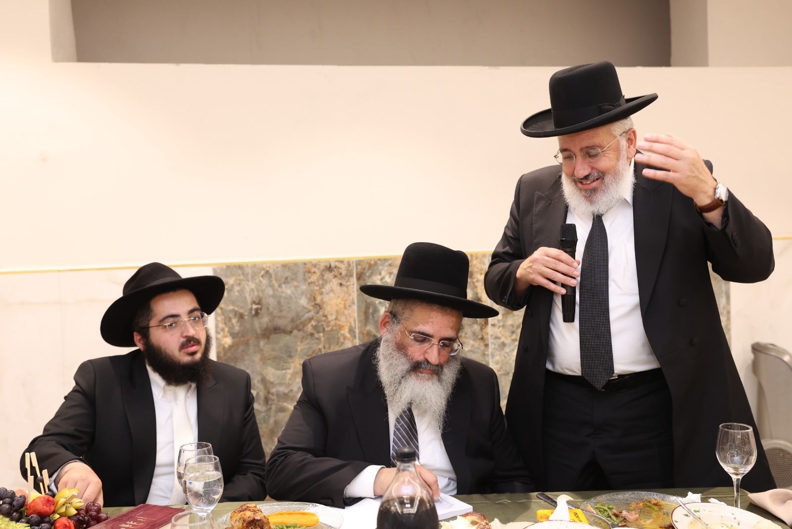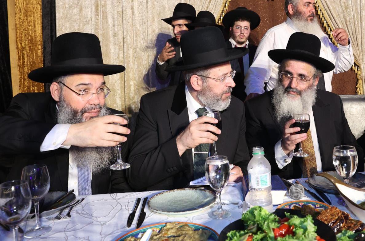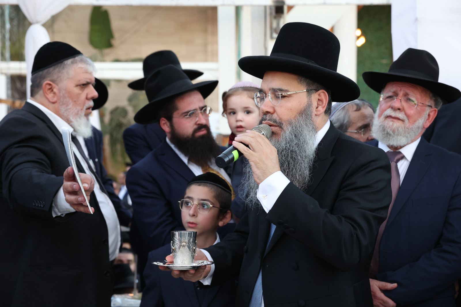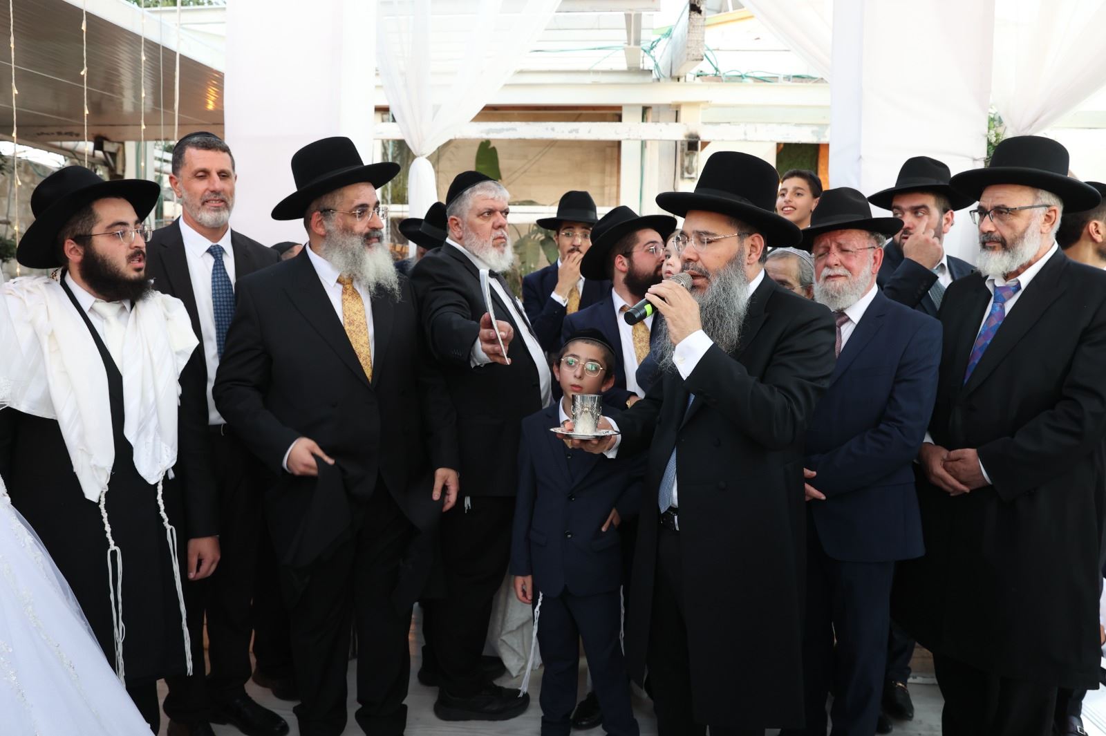 הדיין הרה"ג ר' משה אמסלם אב"ד אשדוד בשמחת נישואי בנו של הגר"י אברג'ל רו"מ המאיר לארץ עם שורה של רבנים וגדולי תורה
