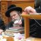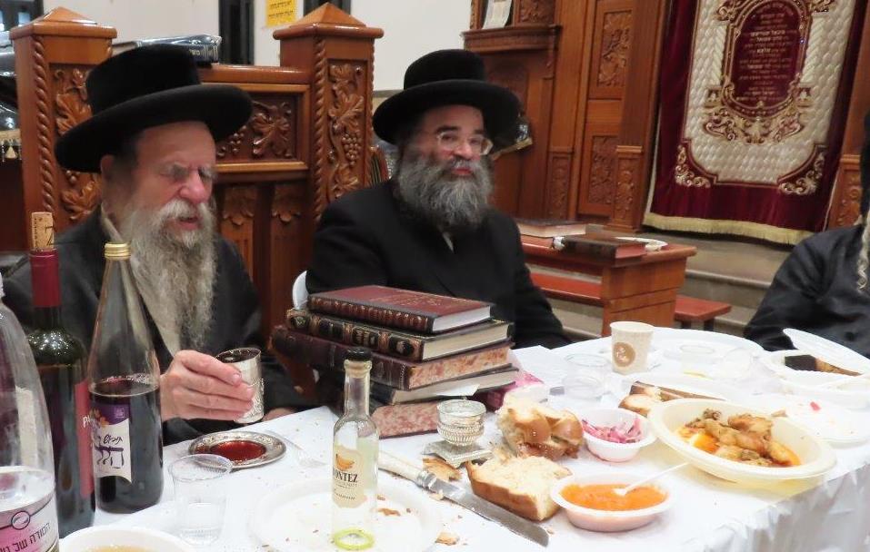 הגר"ש למברגר חילק 'לחיים' כשהקהל עבר לברך ולהתברך וערך ברכת המזון בסיום הסעודה.