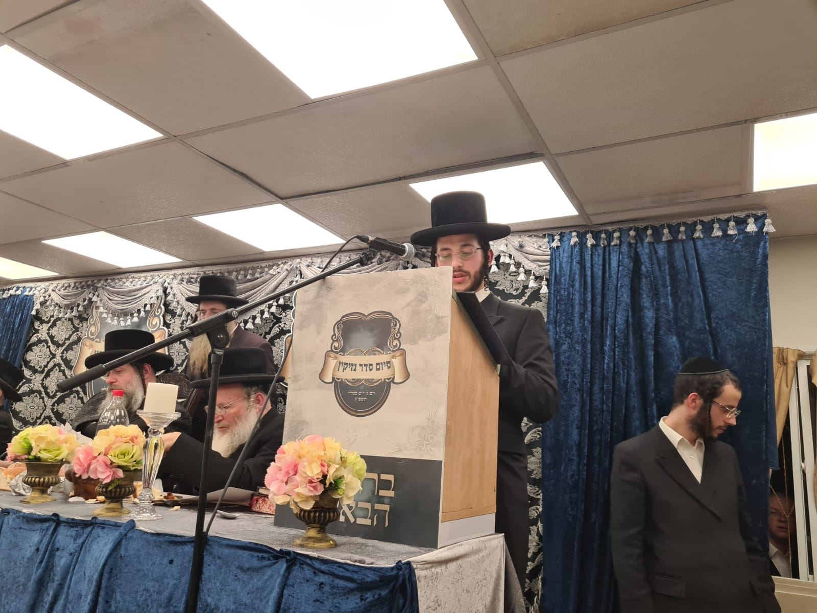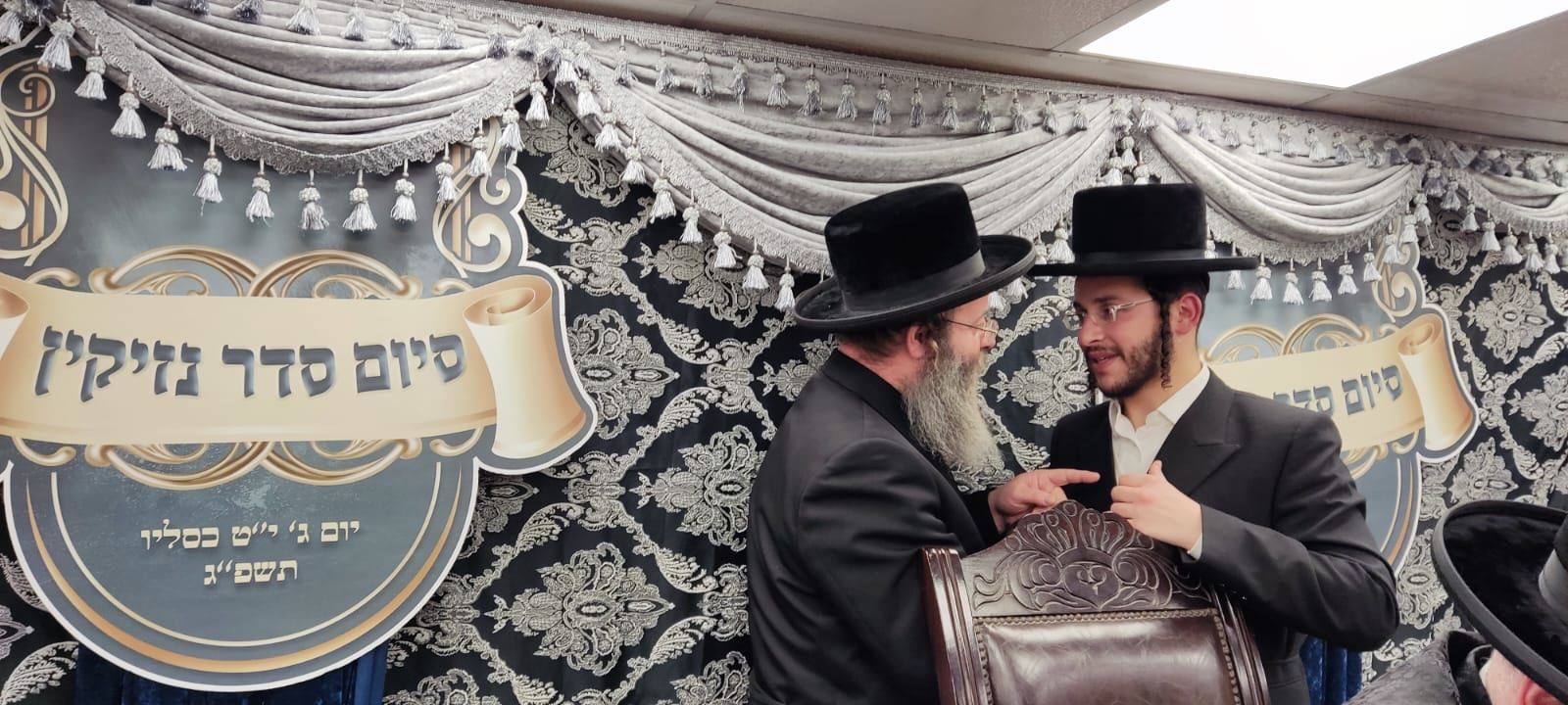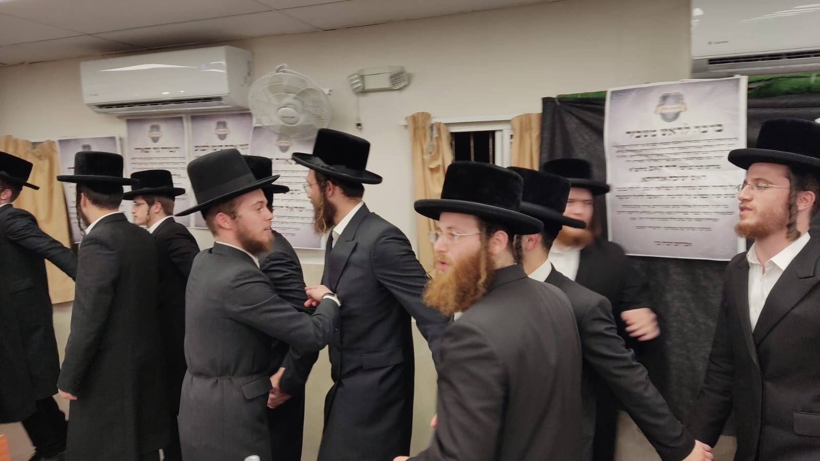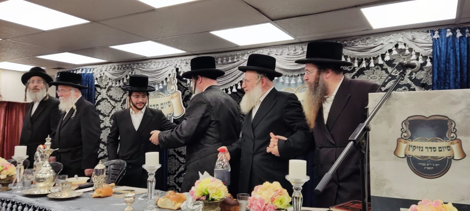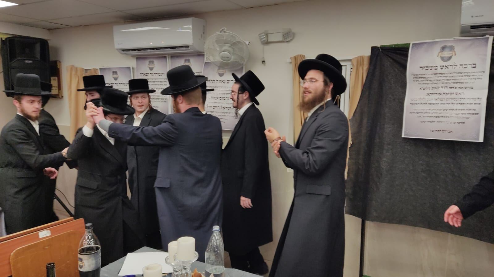 בחורי ישיבת 'אורייתא' הגיעו לשמוח בשמחתו של הבח' אברהם הכהן כץ שזכה לסיים סדר נזיקין. בעל האכסניא, האדמו"ר משאץ, השתתף ונשא דברים