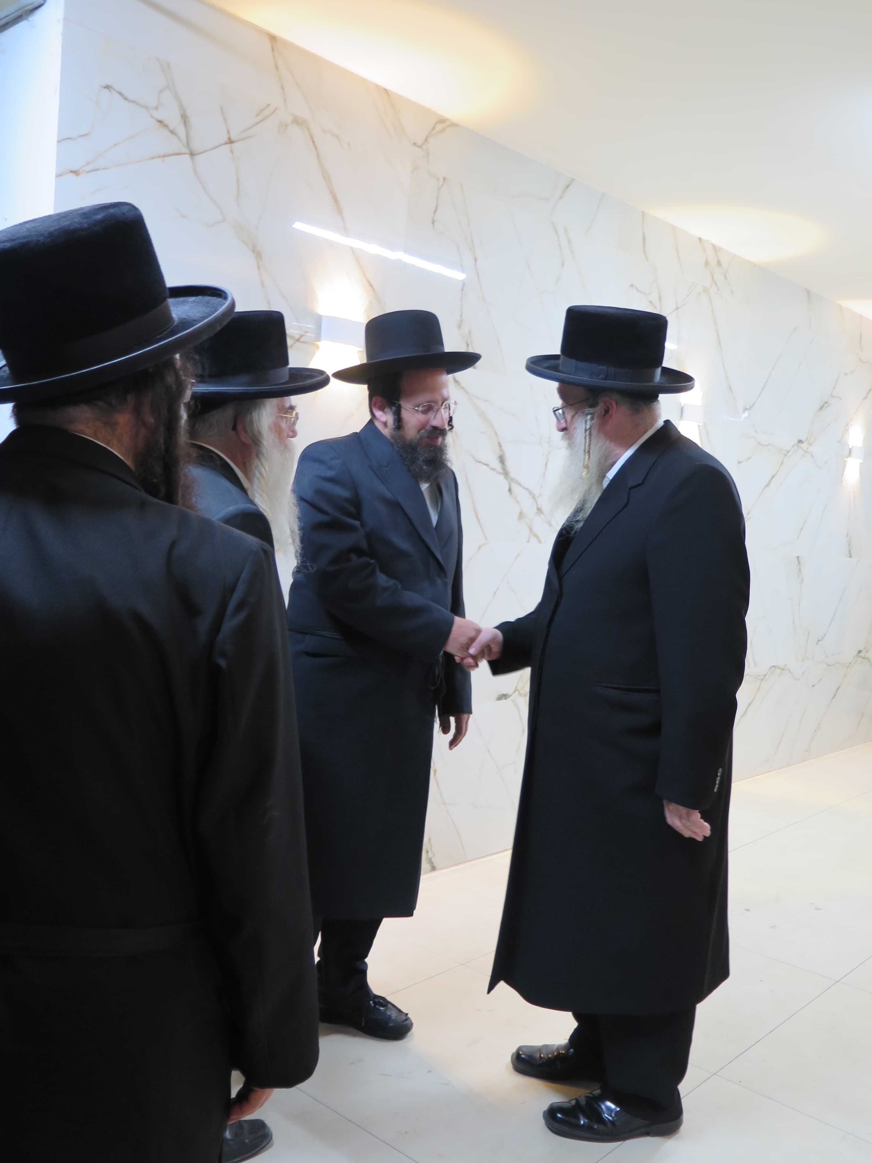 לאחר התפילה הגיע במיוחד הגה"צ רבי שלמה יהודא למבערגר אב"ד מאקאווא אשדוד ונכנס לחדרו של האדמו"ר שליט"א לפרישת שלום, יצויין כי נכדת הגר"ש למברגר נשואה לבנו של האדמו"ר שליט"א מביאלה.