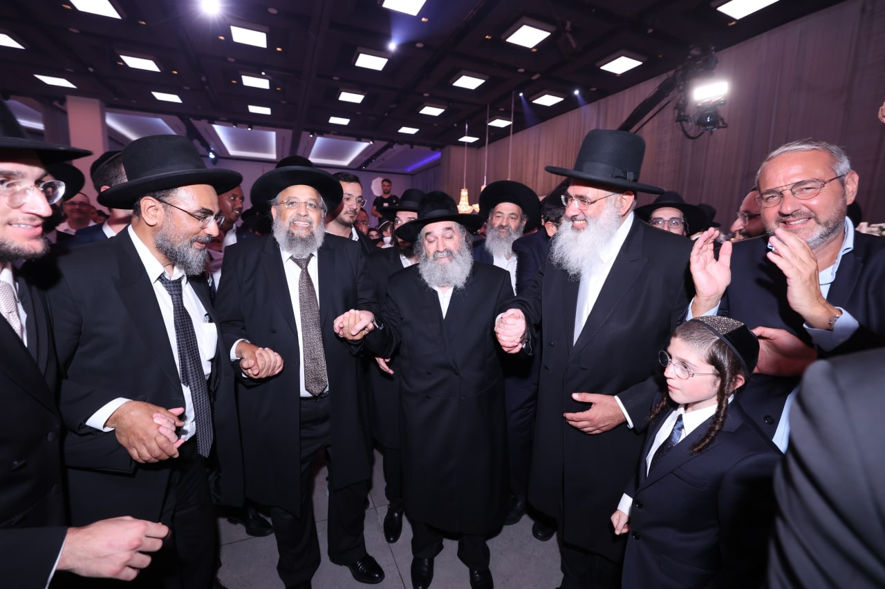 קול רינה וישועה: המונים ובראשם אדמור"ים, הגר"ד לאו הרב הראשי לישראל, רבנים ואורחים רבים מהארץ ומחו"ל השתתפו בשמחת בנו של האדמו"ר בנש"ק רבי יקותיאל אבוחצירא שליט"א שהתקיימה באולמי "אווניו" בקרית שדה התעופה.