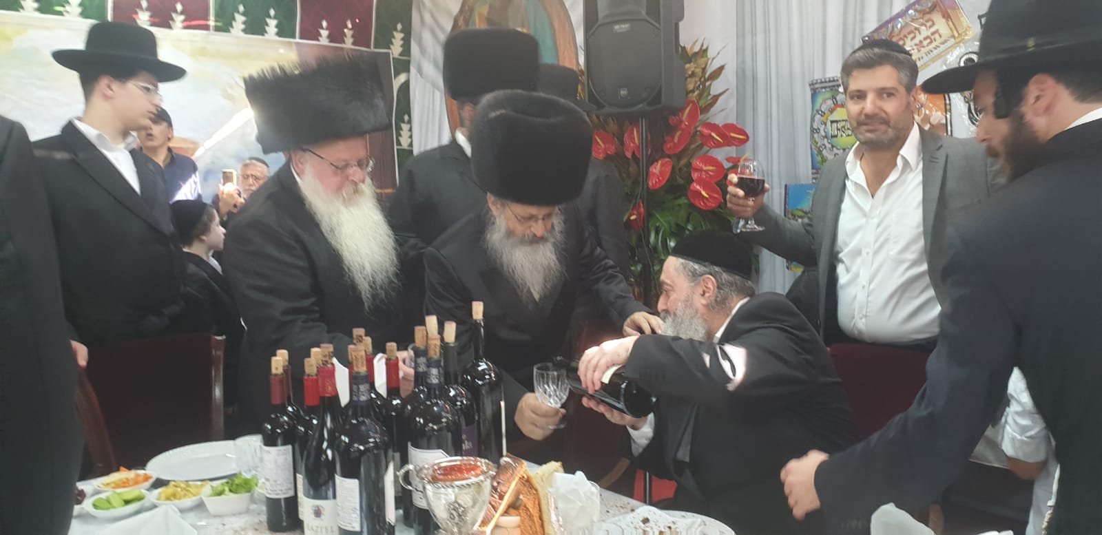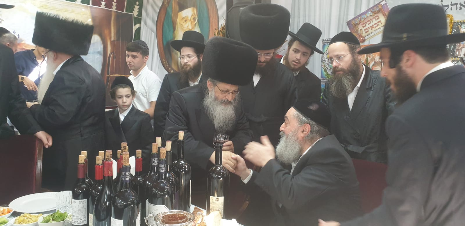 רבים נהרו אתמול לסוכתו של האדמו"ר רבי יקותיאל אבוחצירא שליט"א כחלק משמחת החג בה השתתפו רבנים וחברי מועצה * הרב נשא מדברותיו ומקהלת 'יחד' הרקידה את המסובים