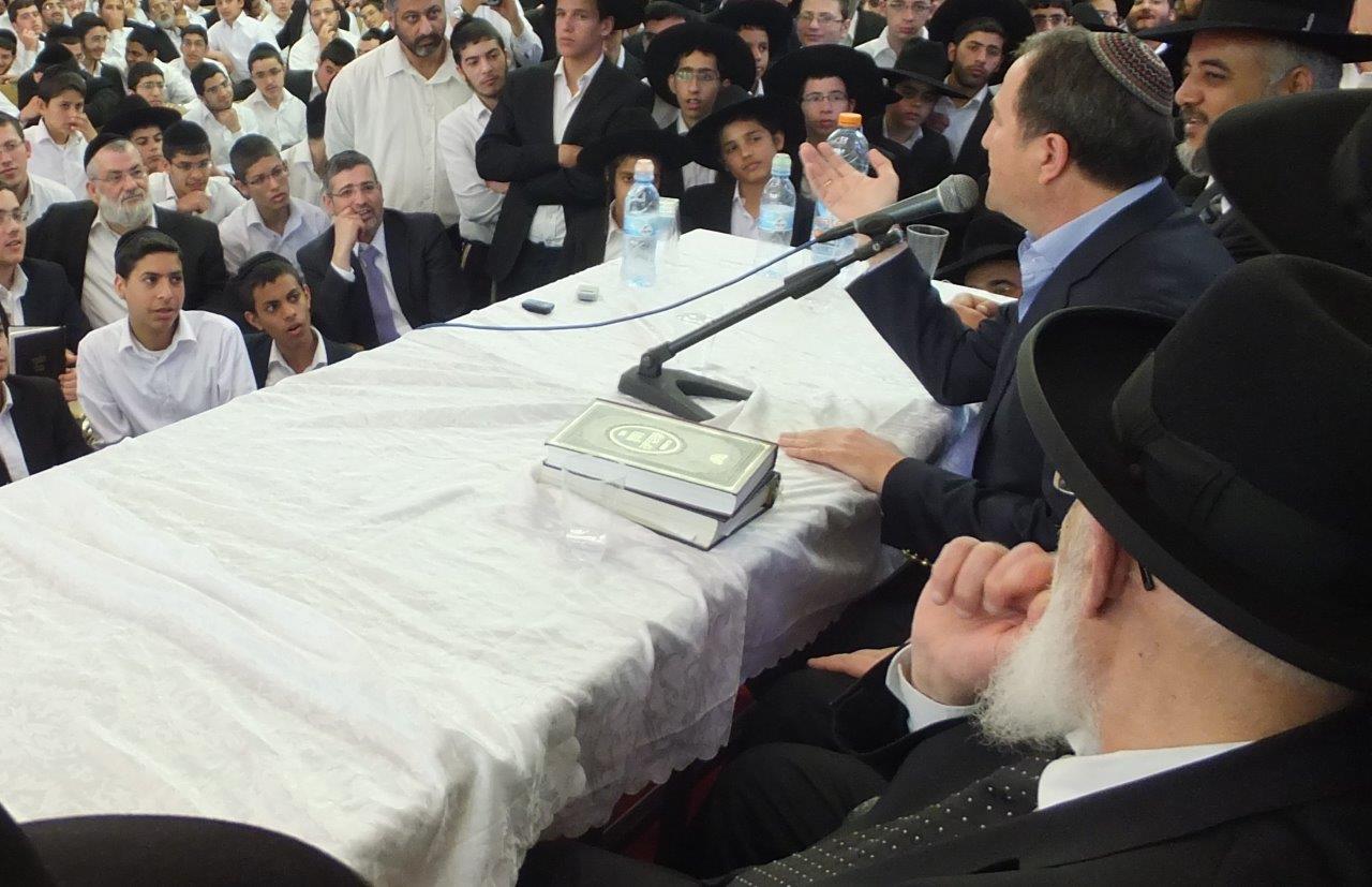 כשמרן החל את שיעורו בפני מאות המשתתפים, פתח בדברי שבח וההערכה לראש העיר ד"ר לסרי שנהנה מדבריו ואמר לקהל, "יש לכם גם ראש עיר וגם תלמיד חכם".