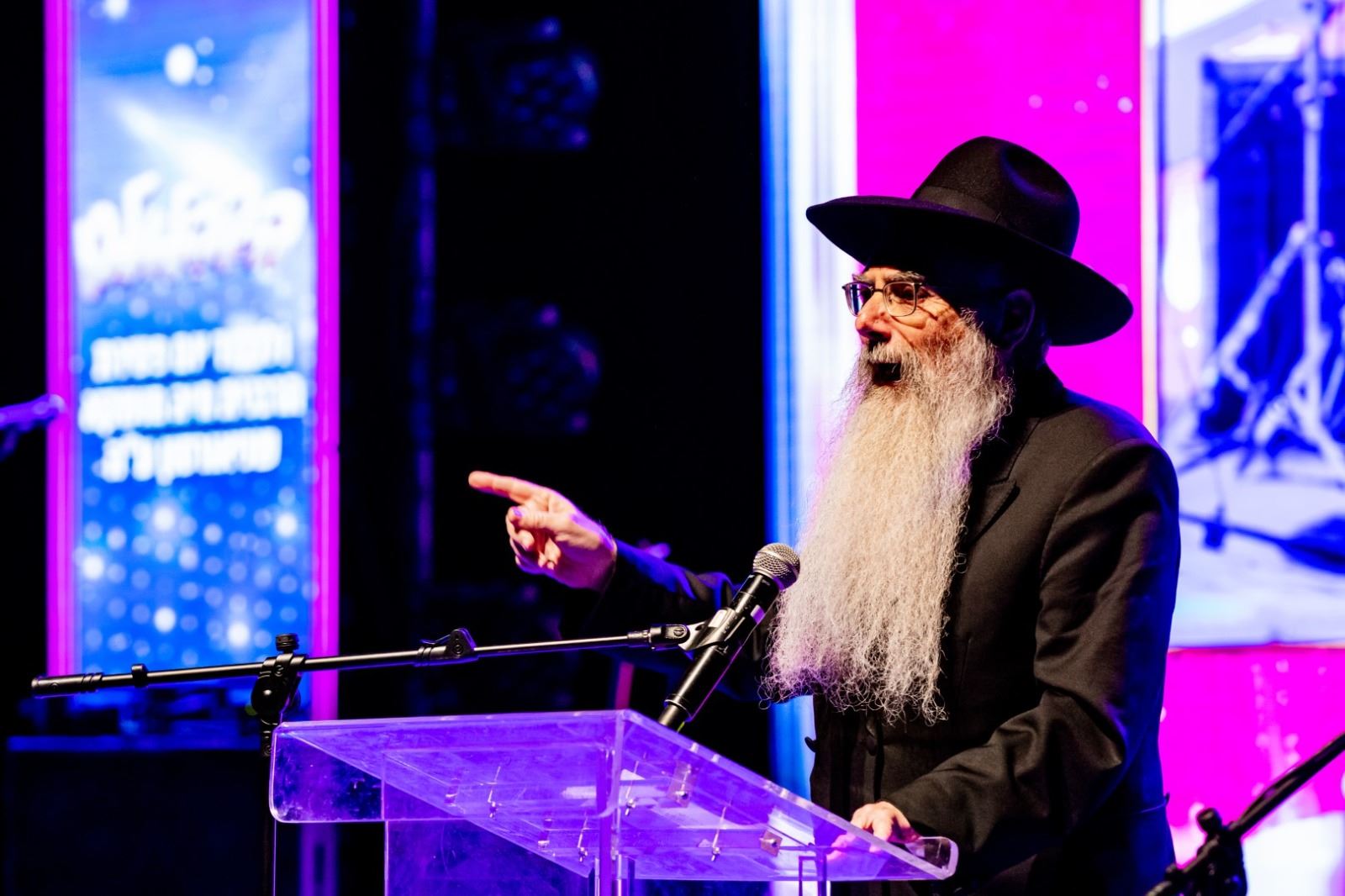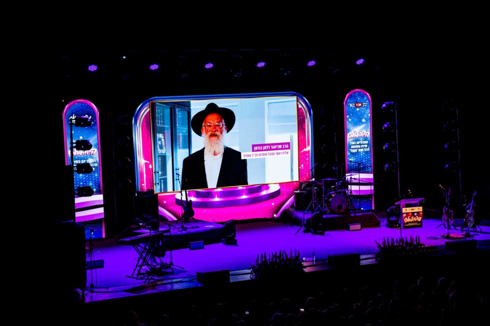 הערב נפתח בדברי ברכה, שהוקרנו על מסכי הענק, מפי שליחו הראשי של הרבי לאשדוד ומנהל המוסדות, הרב שניאור זלמן גודמן.