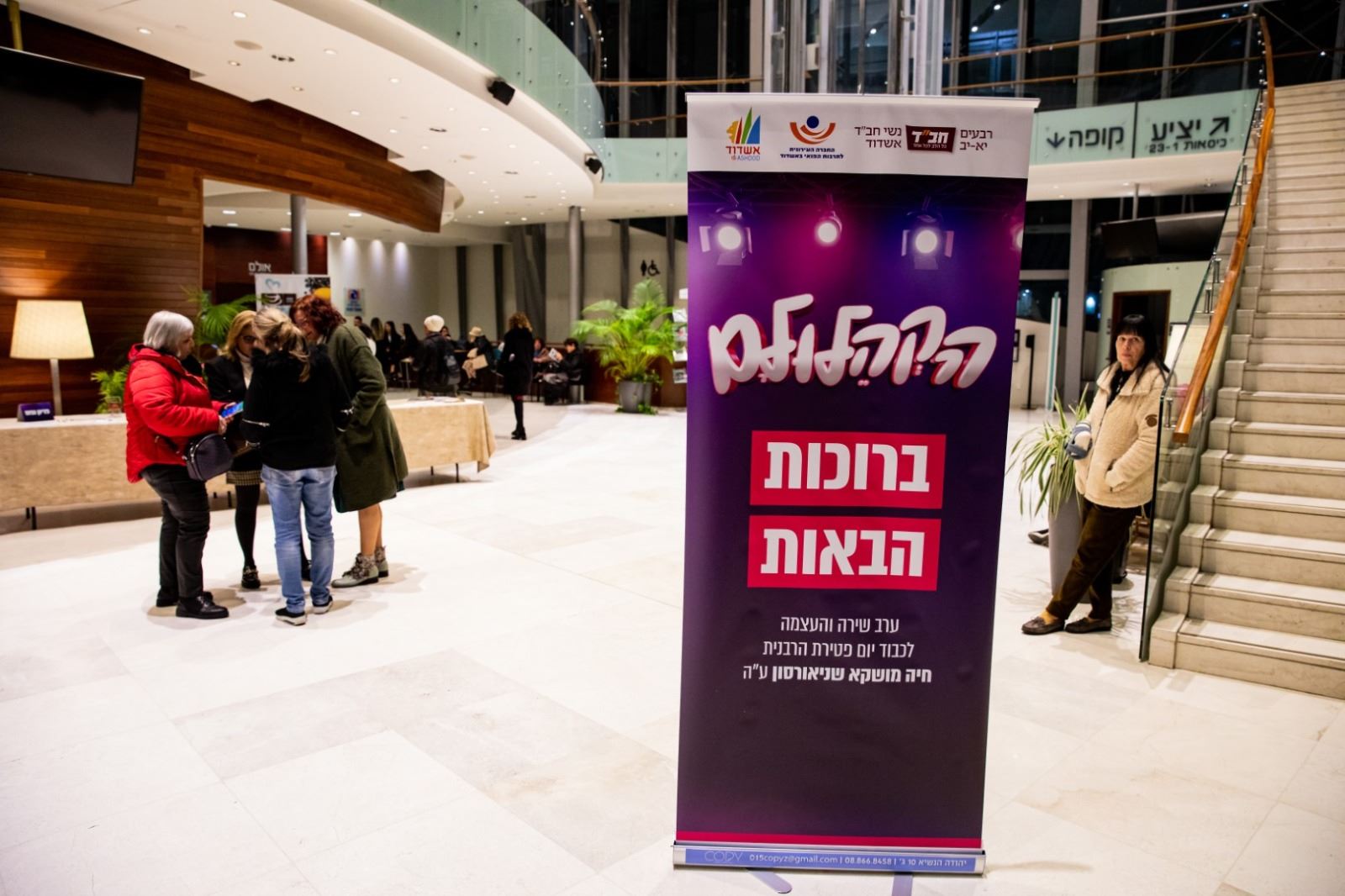 מעמד 'הקהל' כזה עוד לא ראתה אשדוד: היכל התרבות הגדול והמפואר בעיר אירח ערב מושקע לכבוד הרבנית חיה מושקא ע"ה בהשתתפות כאלף מנשות העיר • הרב דיסקין חיבר את הקהל לדמותה של הרבנית, האמנית יובל דיין סחפה עם ניגוני חב"ד, והפקות מולטימדיה מושקעות שיתפו את העשייה הברוכה של שליחות חב"ד באשדוד • סיקור וגלריה מרהיבה