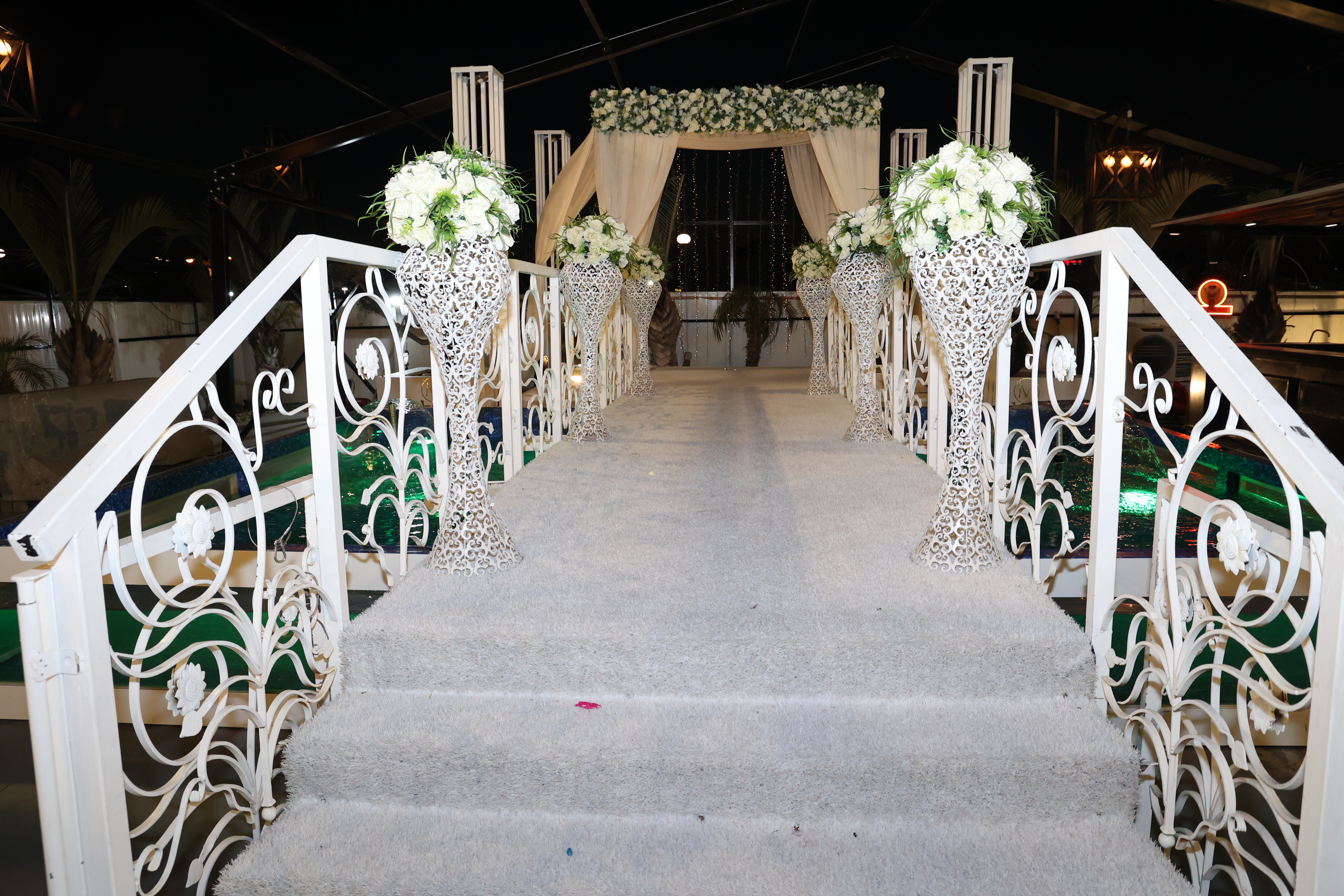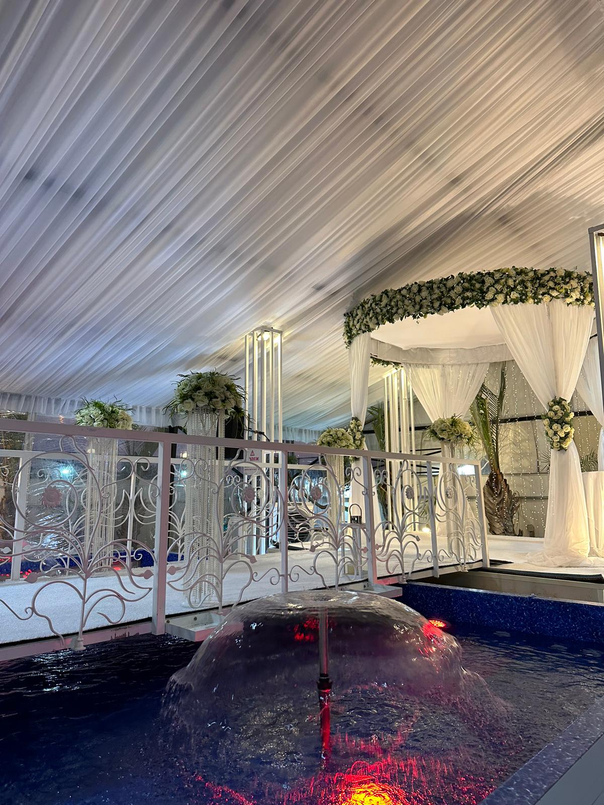 חופה על בריכת מים עם גשר יפייפה