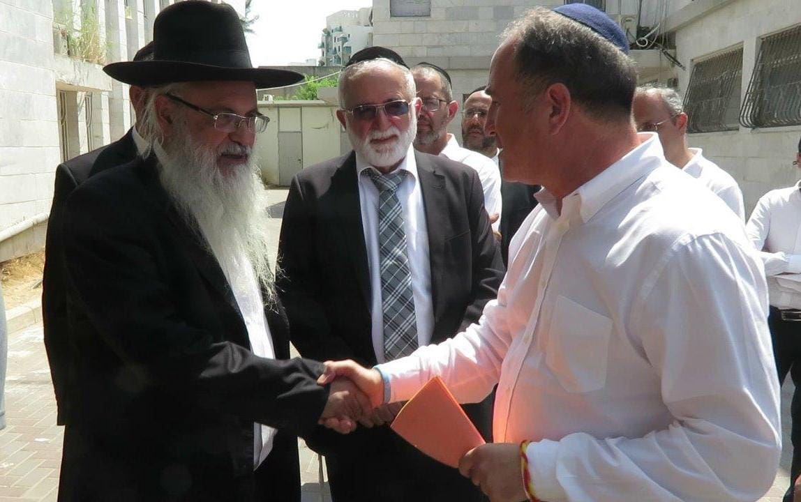 בתמונה: נשיא מוסדות "מורשה" הרב פנחס קריספין מארח את ראש העיר ד"ר לסרי במוסדות ברובע ג'