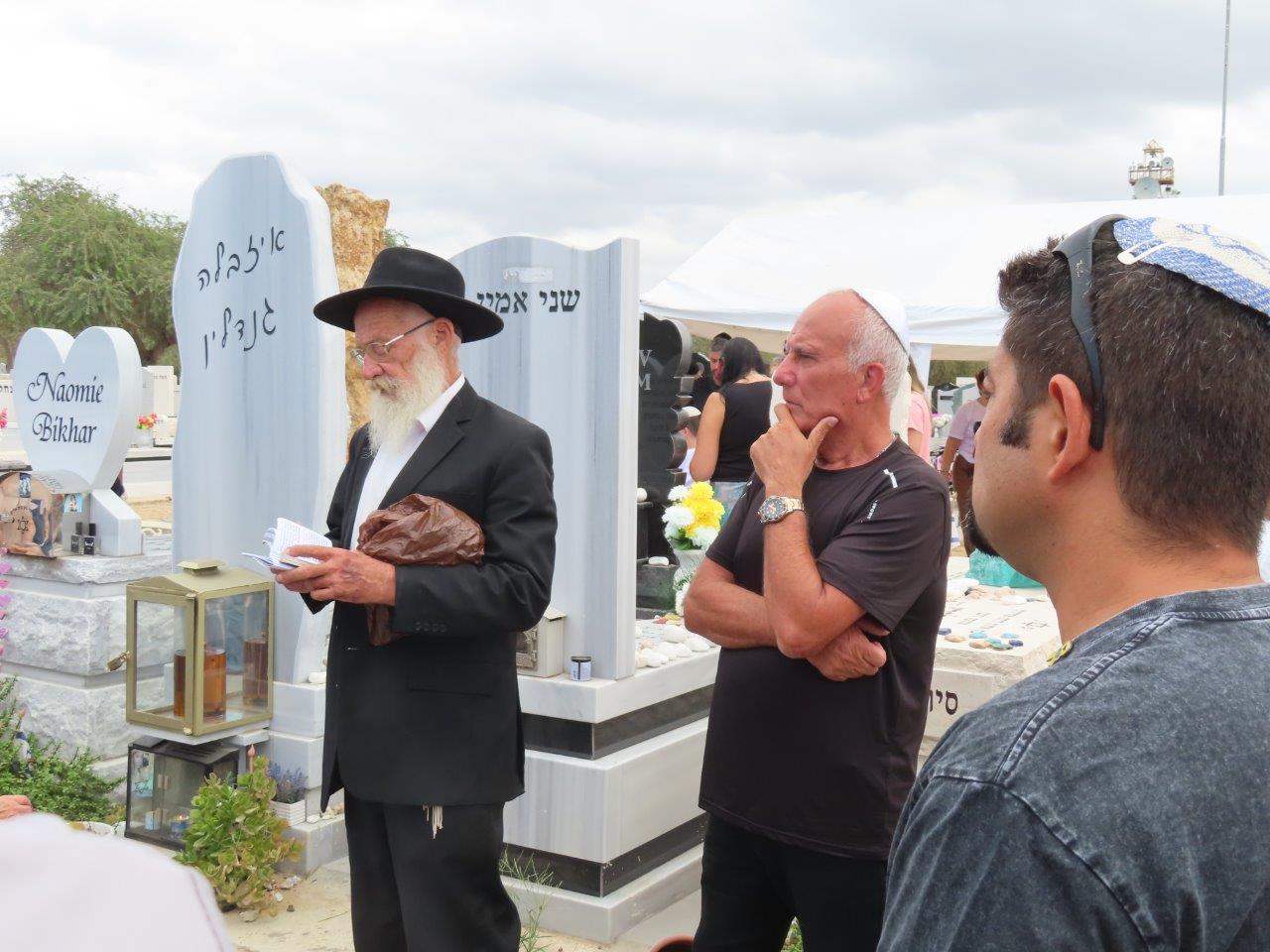 הרב עובדיה דהן נשא פרקי תהילים ומשניות ליד קבריהם של הנרצחים ואמר קדיש.