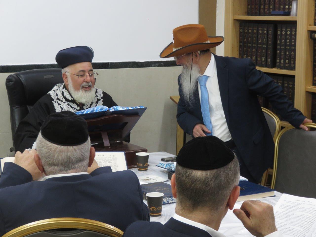 בגלימת הראשון לציון: הרב עובדיה דהן יו"ר המועצה הדתית מסר שיעור "דף היומי" והוקיר את הלומדים בסדר ליל פורים