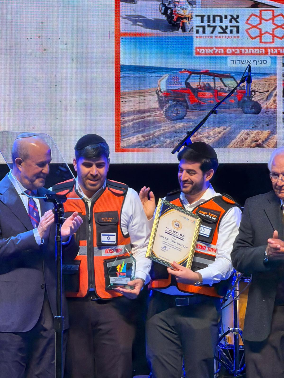 לקבלת המגן בשם מתנדבי איחוד הצלה - סניף אשדוד עלו ראש הסניף דניאל בוקובזה וסגנו דניאל אשוש.