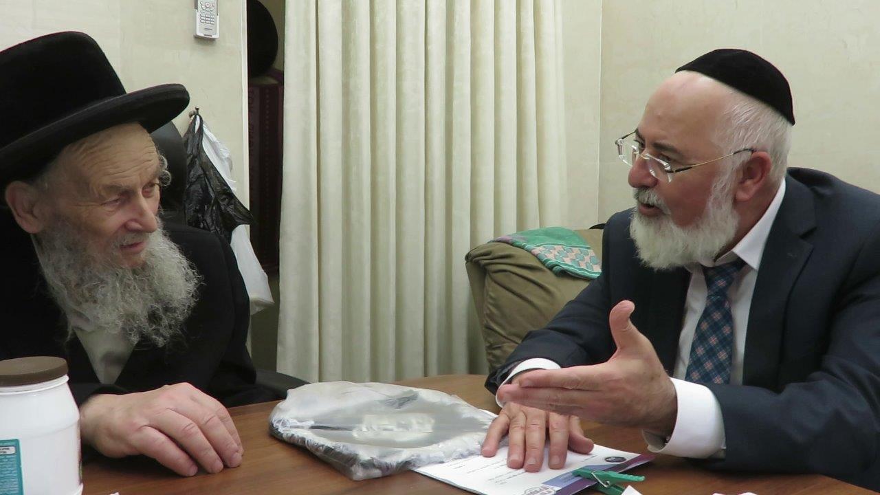 מכירת חמץ מוקדמת: החמץ של שלוחי חברי בית הדין שע"י הרבנות אשדוד ערכו את קנין המכירה אצל הגה"צ רבי חיים פסח הורוביץ שליט"א רבם של חסידי בעלז.