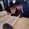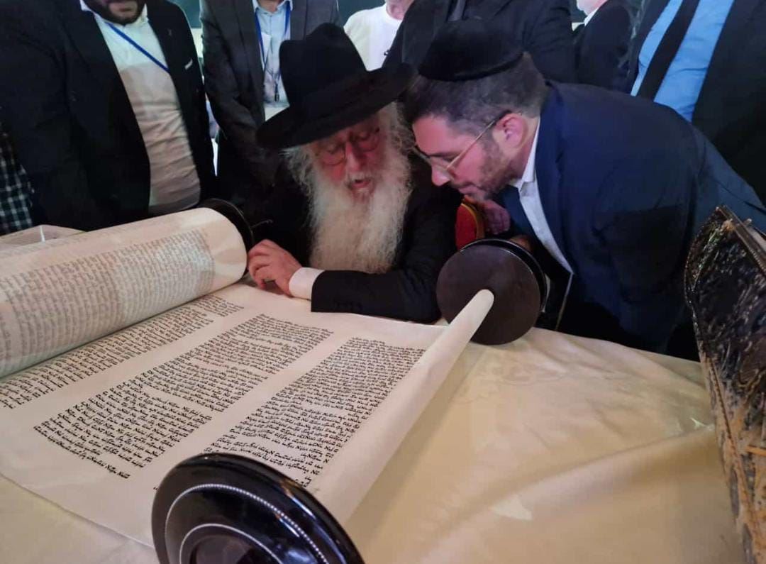 במרכז האולם הוכן במיוחד שולחן ועליו ספר התורה ולצידו הסופר ושם נתכבדו אישים מכובדים לכתוב את האותיות האחרונות בספר התורה, את האות האחרונה בס"ת התכבד האדמו"ר בנש"ק הגה"צ רבי דוד חנניה פינטו שליט"א שנכתב לכבוד ולע"נ זקנו בעל ההילולא זיע"א.