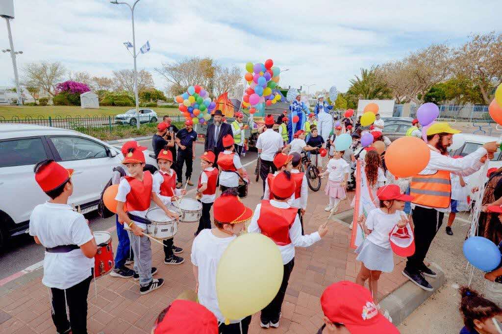 אשדוד נצבעה אדום: מאות ילדים צעדו וקיבלו עול מלכות שמים בתהלוכת 'אור מנחם'