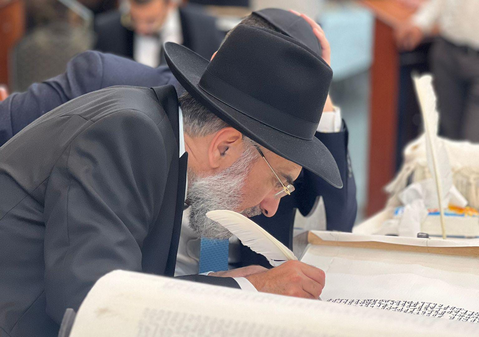 בשעות אחר הצהריים התקיים בבית המדרש מעמד כתיבת האותיות האחרונות בשלושת ספרי התורה, שנתרמו ע"י שלושה תורמים ידידי המוסדות לע"נ יקירם. המעמד החל קודם לכן בקביעת מזוזה בכניסה הראשית לבית המדרש ע"י מיסד ומקים בית הכנסת הרה"ג ר' אברהם בן חמו.