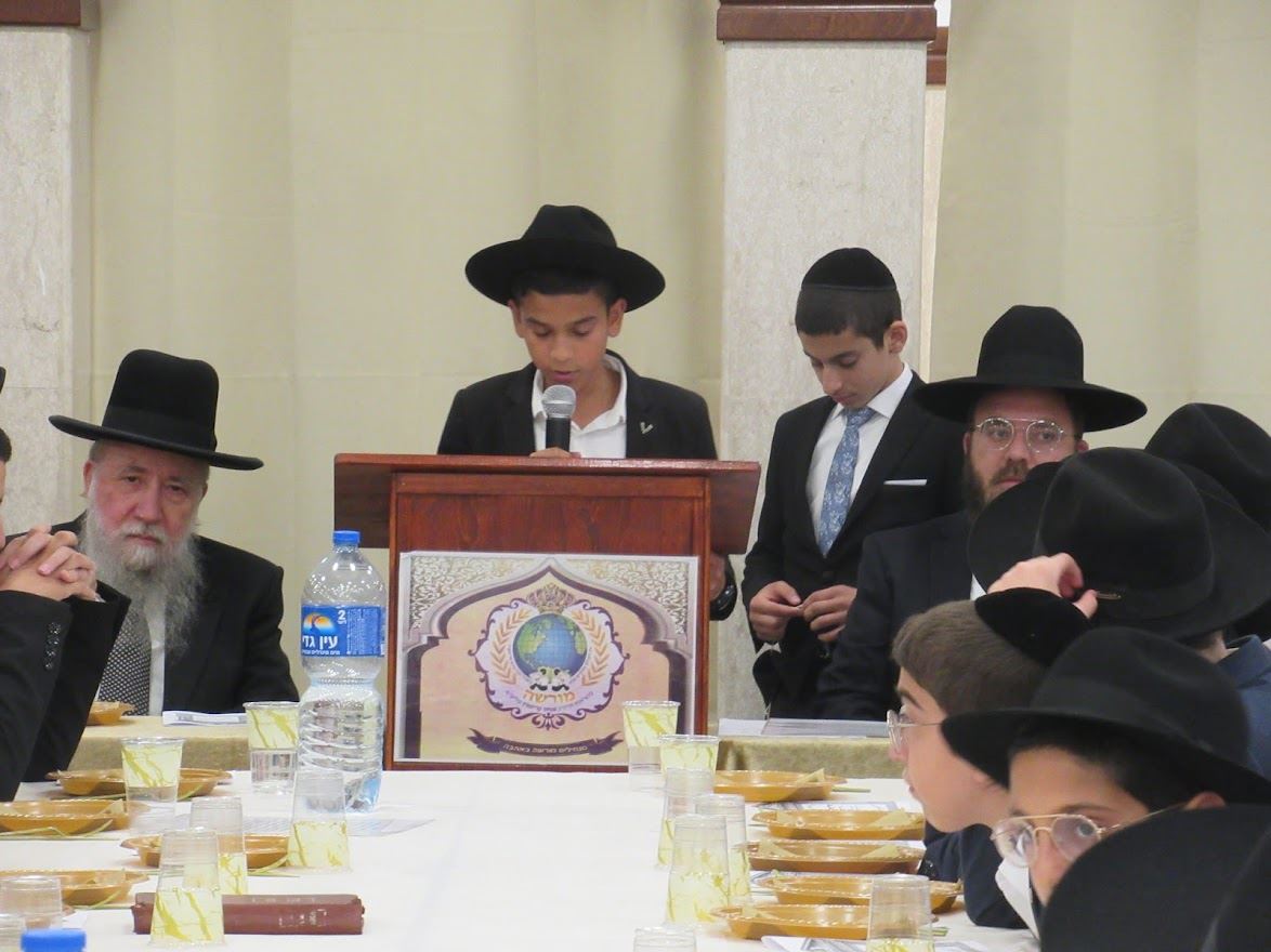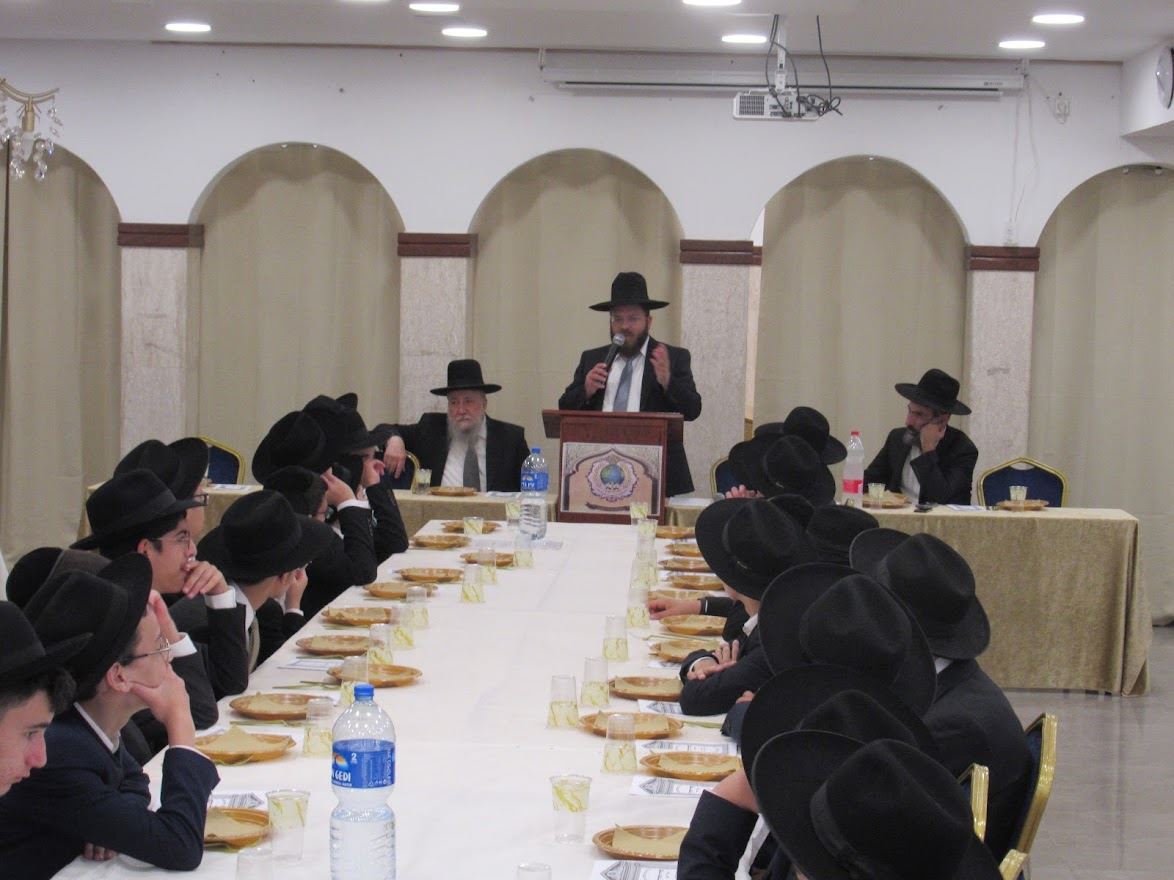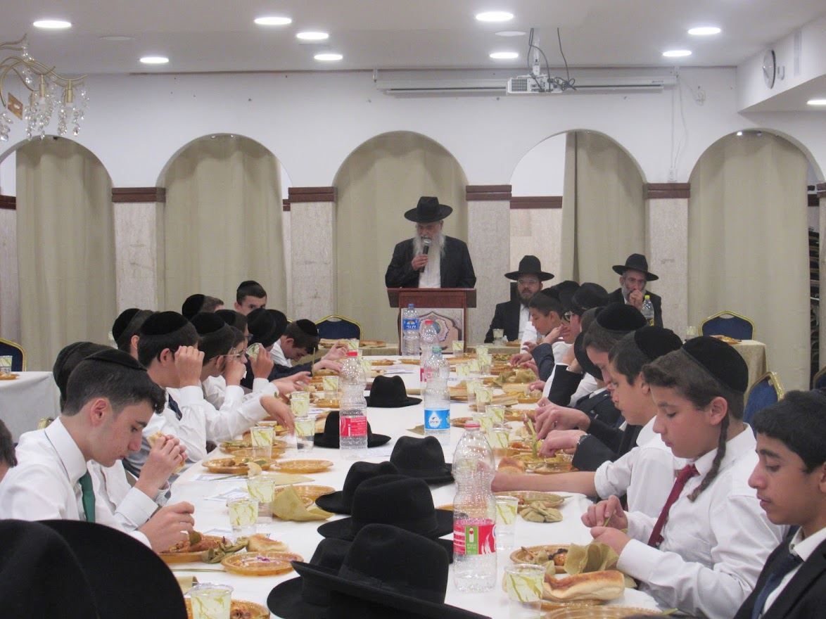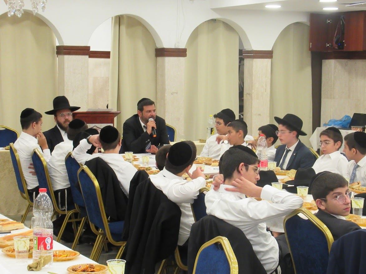 לאחר תפילת מנחה, התלמידים היסבו לסעודת מצוה שבמהלכה נשא דברי פתיחה וברכה מנהל התלמוד תורה הרב יעקב קריספין ששיבח את התלמידים ואמר "נפש עמל עמלה לו", התלמידים השקיעו מזמנם וממרצם והצליחו בס"ד להגיע להישגים כאלו וזה מה שיעודד אותם גם בעתיד להמשיך ולגדול בתורה בהיכלי הישיבות הקדושות.