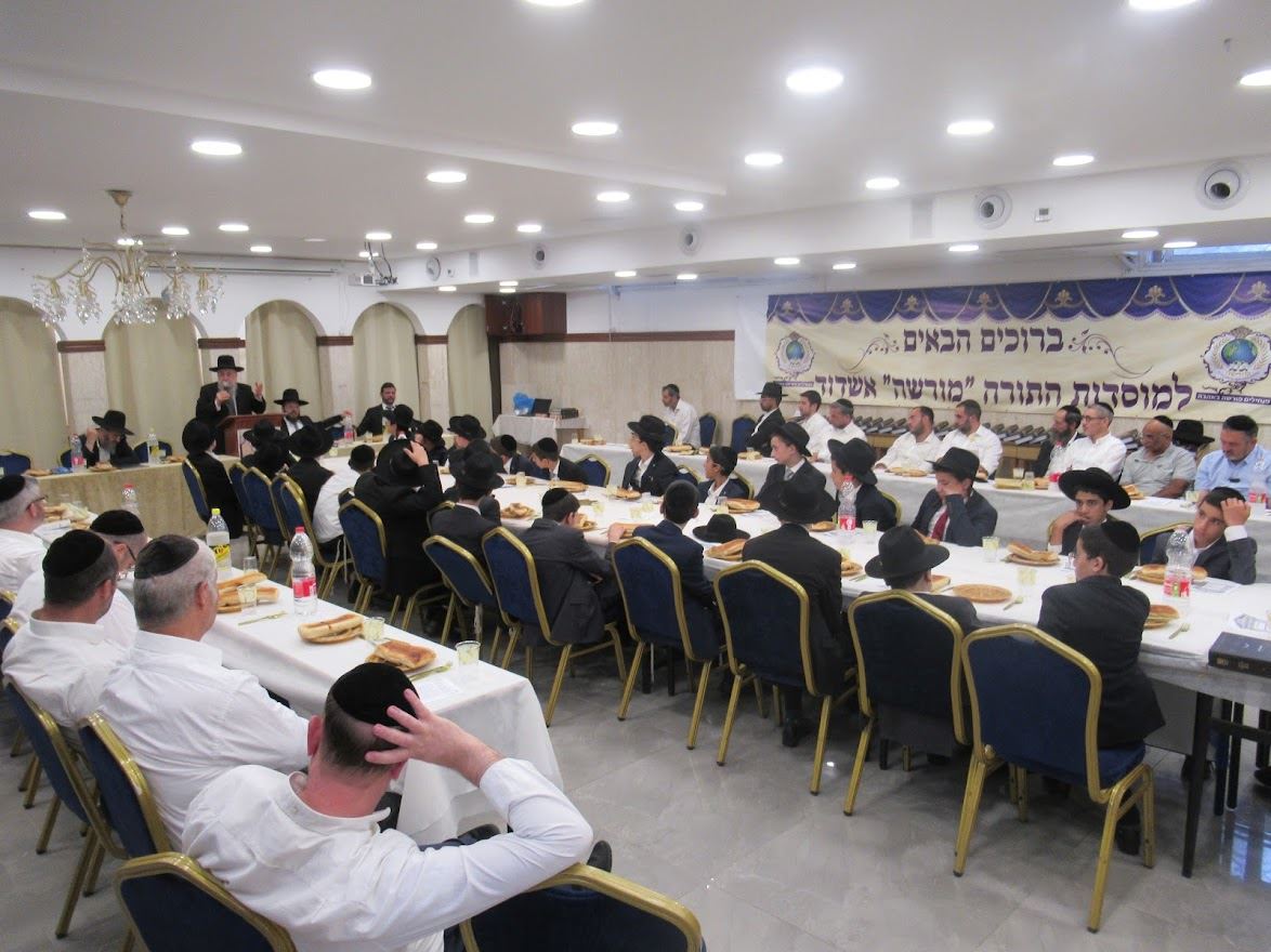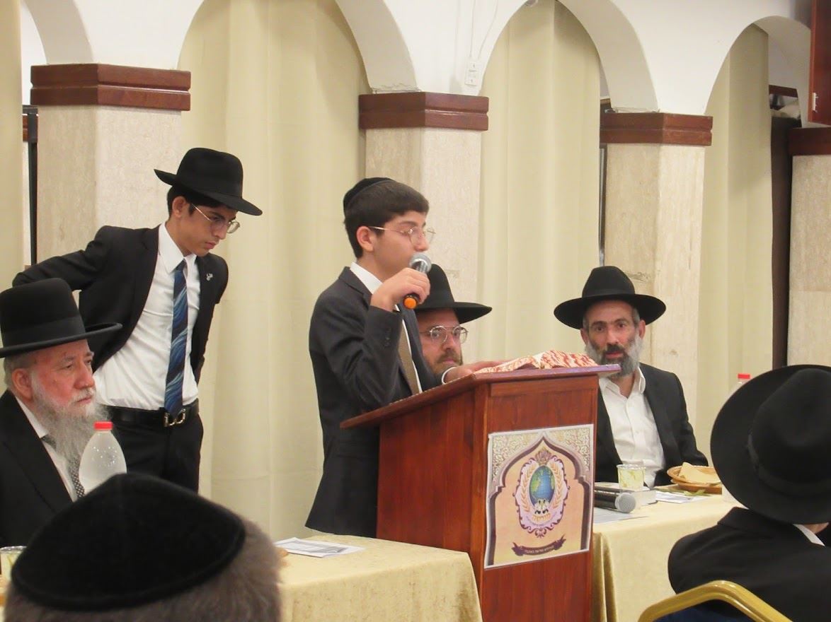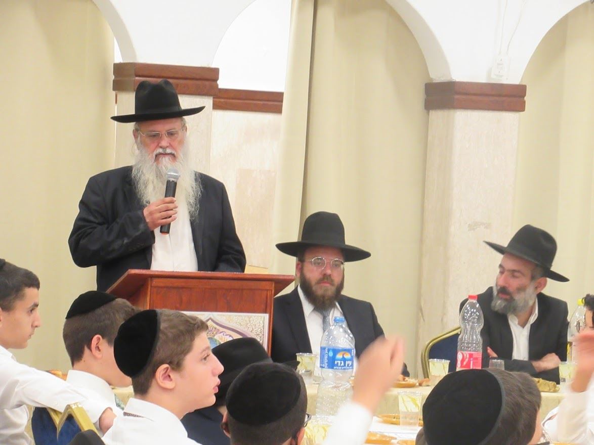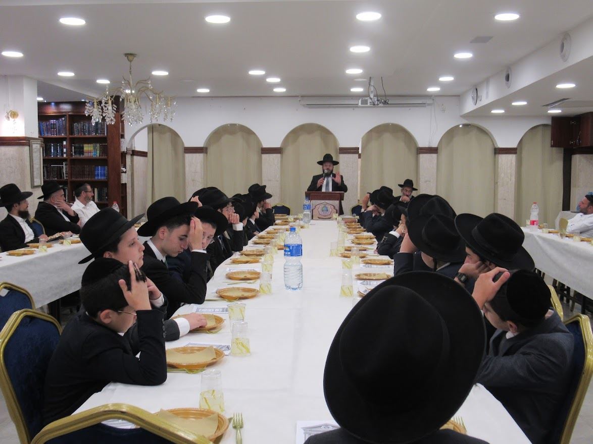לאחר תפילת מנחה, התלמידים היסבו לסעודת מצוה שבמהלכה נשא דברי פתיחה וברכה מנהל התלמוד תורה הרב יעקב קריספין ששיבח את התלמידים ואמר "נפש עמל עמלה לו", התלמידים השקיעו מזמנם וממרצם והצליחו בס"ד להגיע להישגים כאלו וזה מה שיעודד אותם גם בעתיד להמשיך ולגדול בתורה בהיכלי הישיבות הקדושות.