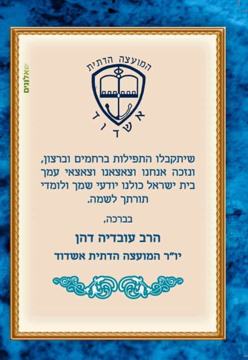 'אשדוד'ס' מצרף את התפילה, שאותה נהוג להתפלל ביום זה, כסגולה לבנים צדיקים.