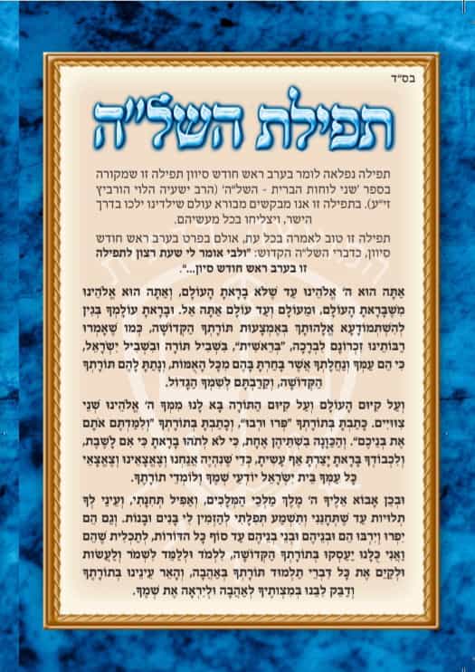 באדיבות המועה"ד: תפילת השל"ה לרגל ר"ח סיון
