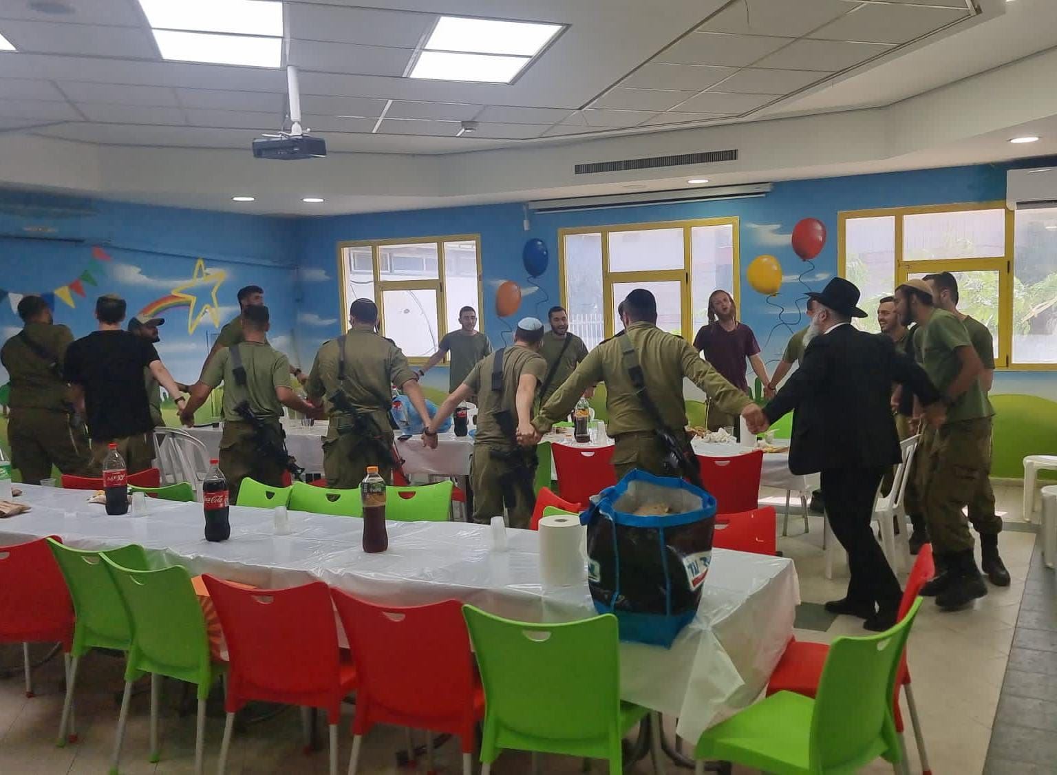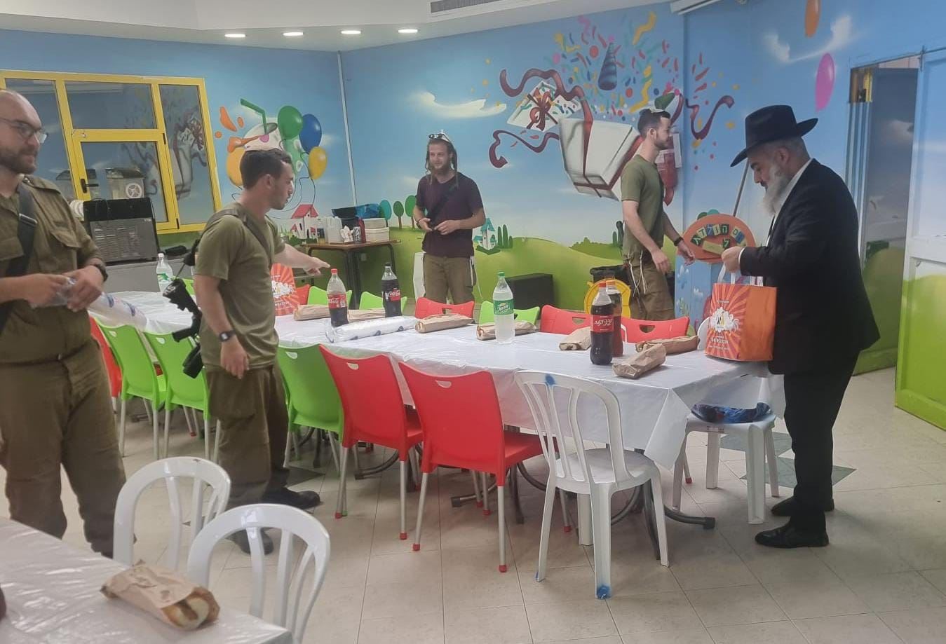 הרב אילן גוזל רב המרכז לצעירים ערך הזמנה ממסעדה, מנות עם סנדוויצ'ים בשר ושתיה עבור חיילי צה"ל כשבתחילה לא מצאו מקום נוח לשבת באזור ואז שוחח עם הנהלת המתנ"ס והם מיד נענו בחיוב לארח את החיילים, ותוך זמן קצר הרב אילן גוזל ערך את השולחנות באולםעם צלחות בקבוקי שתיה עבור החיילים.