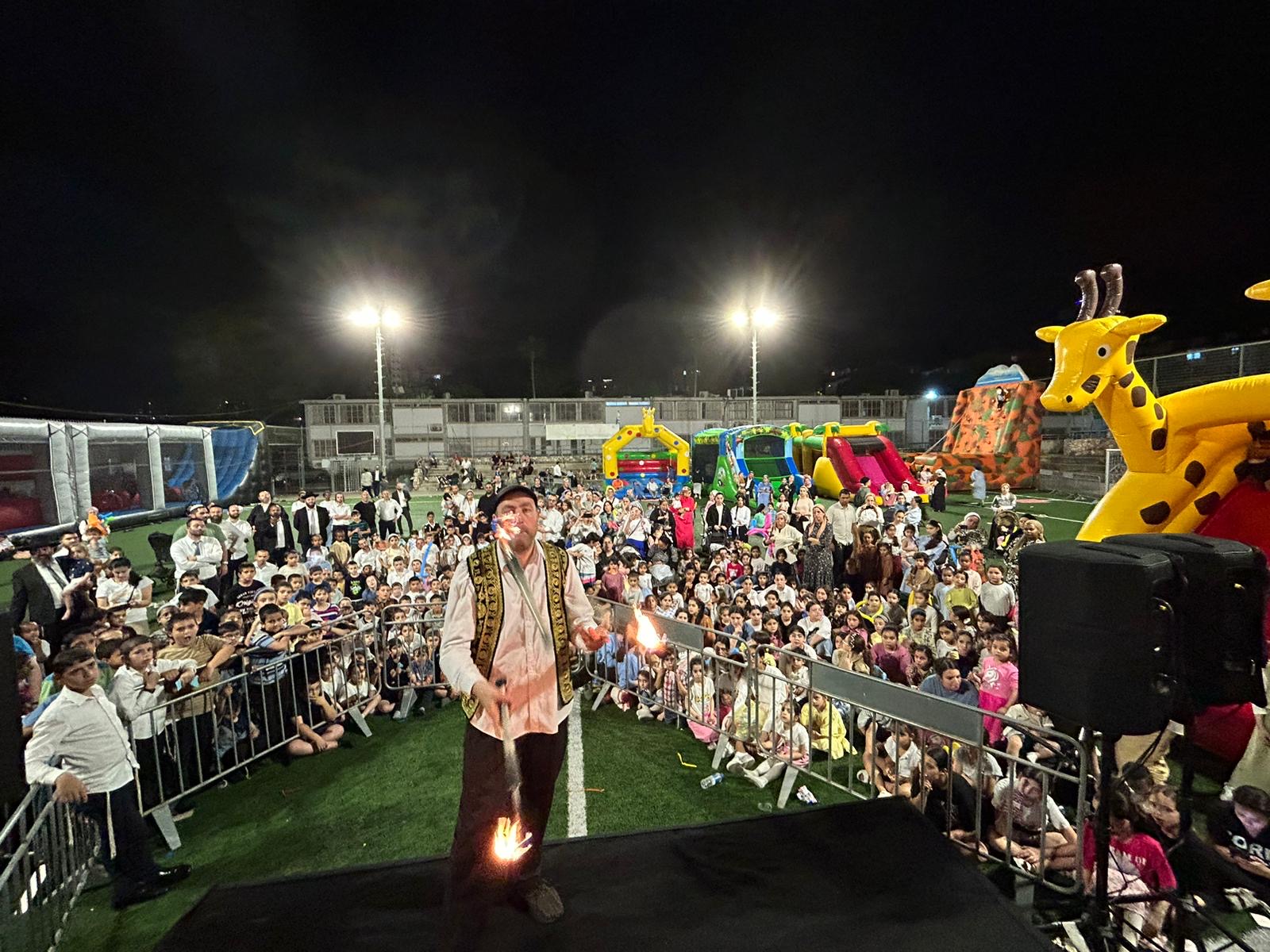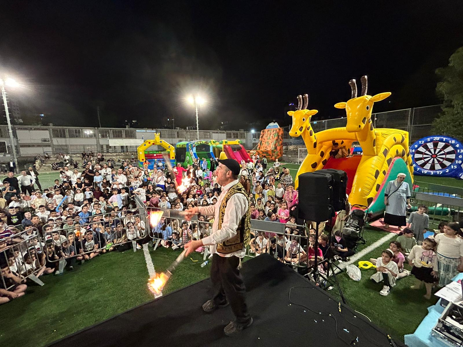 החל משעות אחר הצהריים הגיעו המוני ילדים וילדות למתנ"ס ונהנו מאטרקציות רבות כמו מגלשת ג'ירפה, חד קרן, ג'ונגל משולב, שלל מתנפחים ענקיים, סוס פוני לצילום כמזכרת למשתתפים, בועות סבון, ספוג עגול, ריקוד הבובות החסידי שהקפיץ את כולם, קפיצת דולפין וכל זה לצד מופע אקרובטיקה ואש מדהים עם "לייבל שמייבל" שהדהים את כל הילדים בביצועים מרתקים, אומן הבלונים עמי ידגר שיצר בלון אישי לכל ילד וילדה.