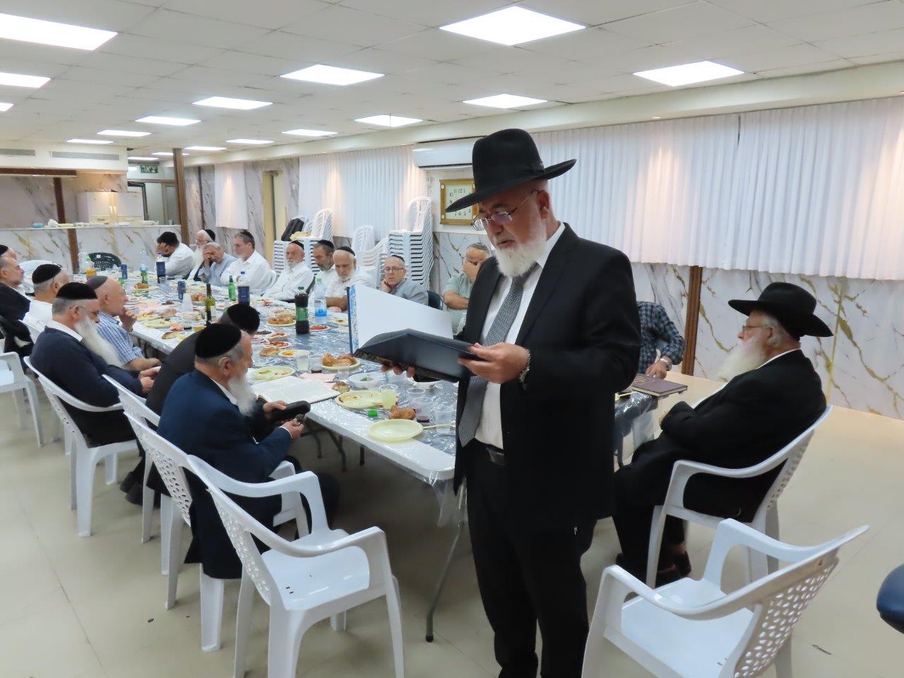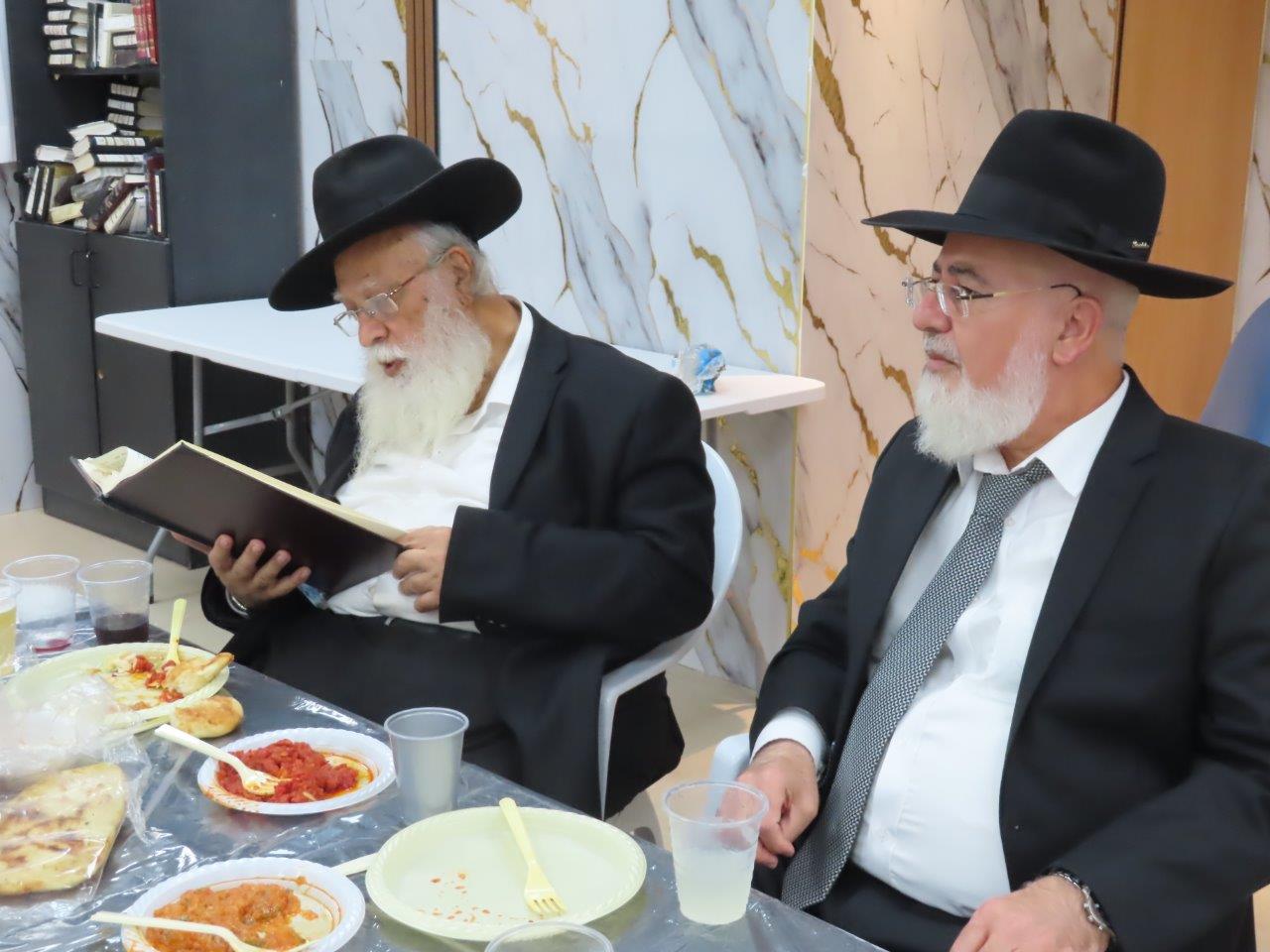 הדרן עלך: משתתפי השיעור הקבוע מידי ערב בבית הכנסת הריב"ז, חגגו כאשר ערכו סיום על סדר "מועד" עם סעודת מצוה.