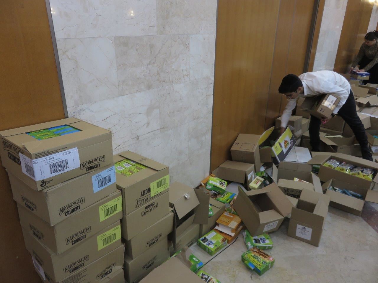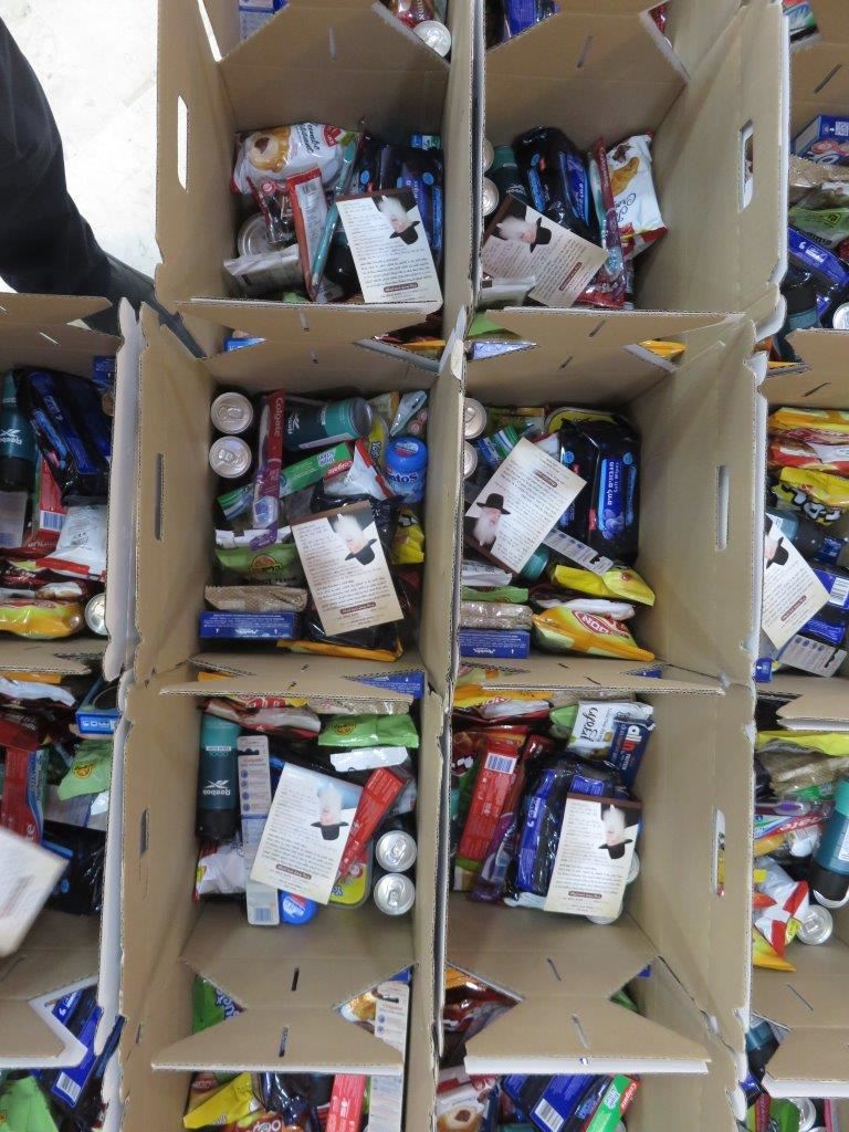 משם יוצאים משטחים עמוסים במארזים לשטחי כינוס של חיילי צה"ל באוגדת עזה ויחולקו ע"י מתנדבי המוסדות.