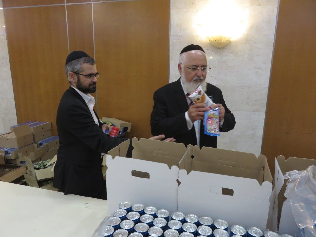 צוות של מתנדבים הועמדו במשך כל שעות היום לארוז את המוצרים לארגז בינוני עם ידיות קל ונוח לנשיאה. בין המתנדבים הופיע הרב עובדיה דהן יו"ר המועצה הדתית שנתן מזמנו לכבודם של חיילי צה"ל, בסיום הודה ובירך את האדמו"ר הגה"צ רבי דוד חנניה פינטו העושה עבודת קודש מתוך אהבת ישראל אמיתית היוקדת בקרבו תמיד ובכל עת.
