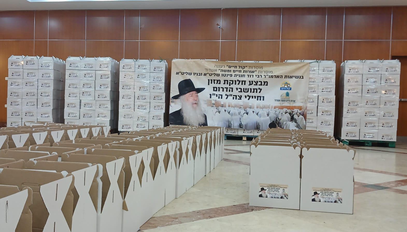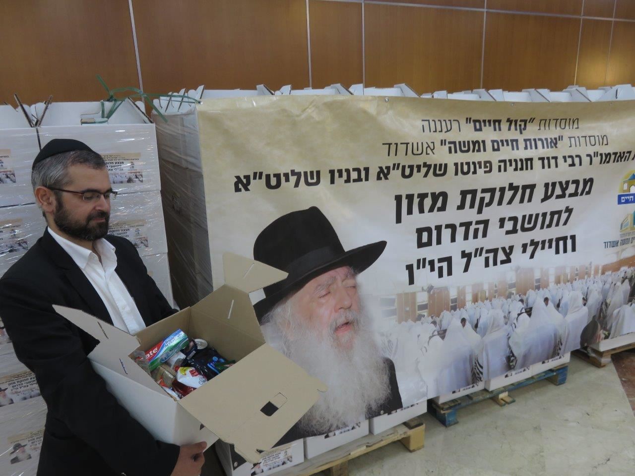 למעלה מאלף חבילות מזון יוקרתיות חולקו ע"י מוסדות "אורות חיים ומשה" בראשותו של כ"ק האדמו"ר רבי דוד חנניה פינטו שליט"א.