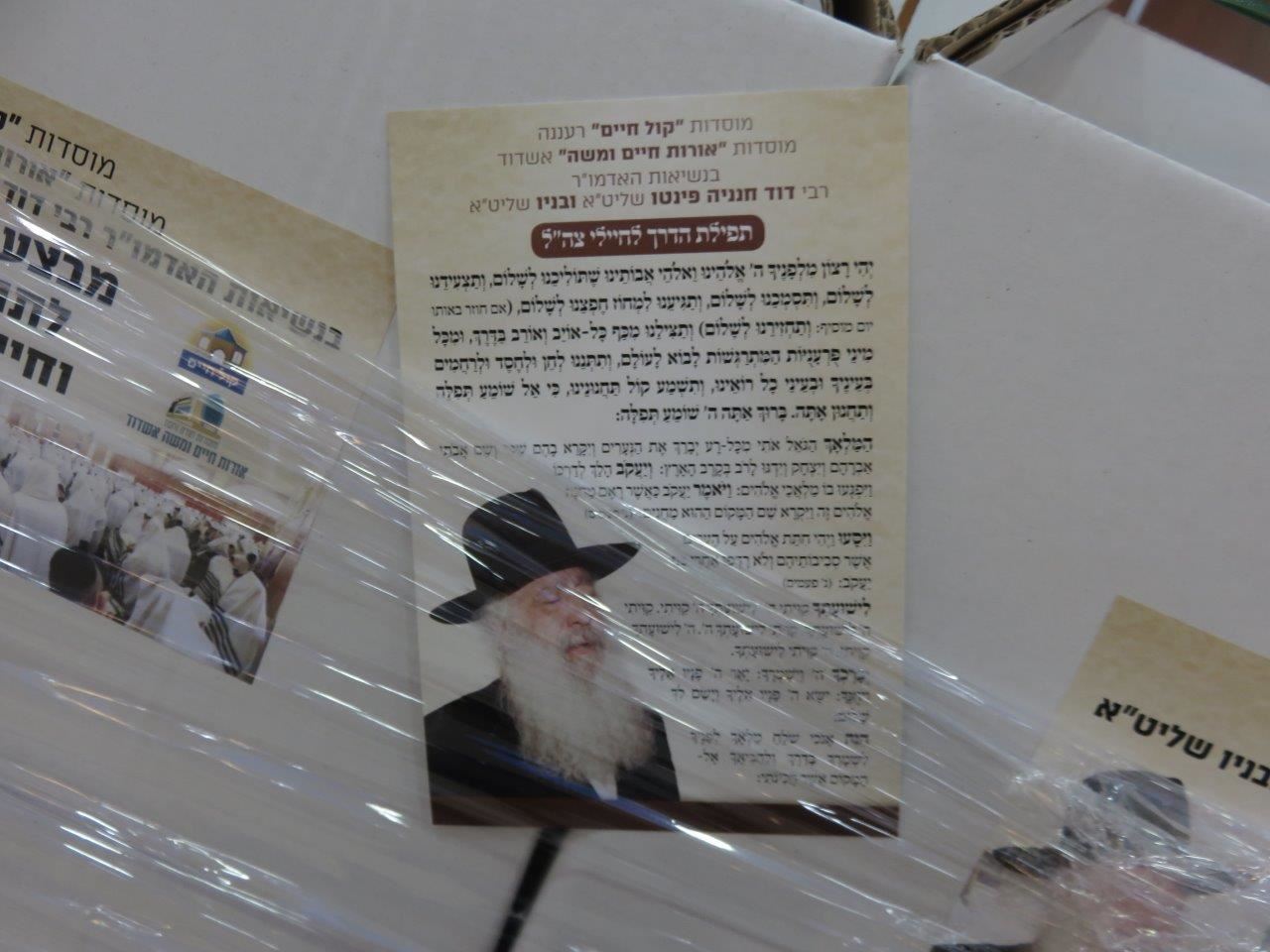 הרה"צ רבי דוד חנניה פינטו שמאז האסון המחריד של שואת שמחת תורה, לא נח לרגע וכואב את כאבם של המשפחות וחיילי צה"ל שנלחמים ומחרפים את נפשם, הרב פינטו קיבל על עצמו כל יום להתפלל עבורם ובנוסף ביקש לעשות מעט למענם וביקש מאנשיו שיכינו עבור החיילים מארז מכובד לכל חייל באופן אייש כשלכל מארז מצטרפת תפילת הדרך לחיילי צה"ל.
