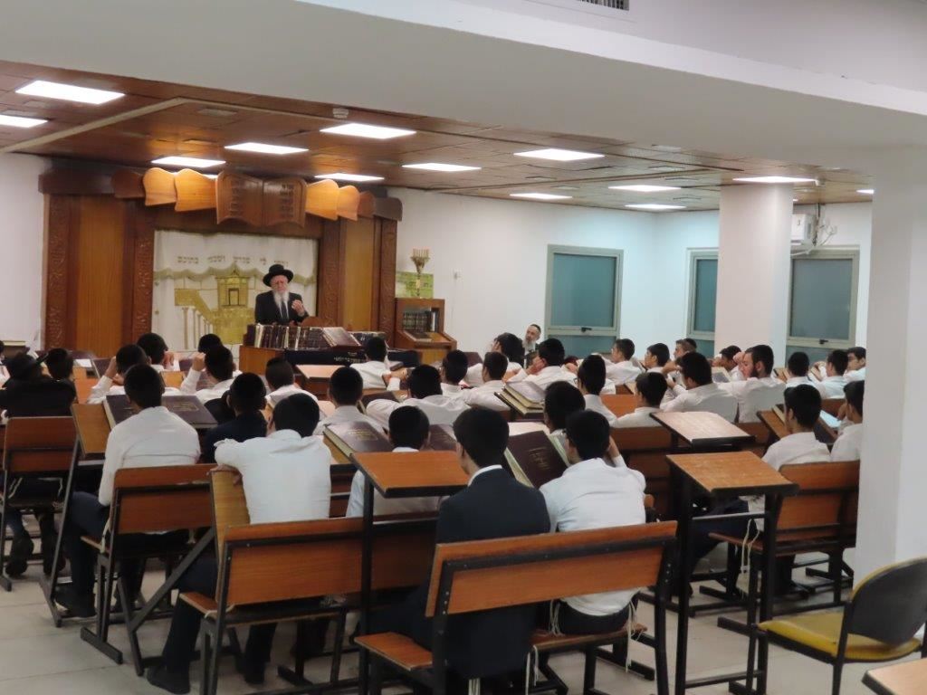 את פניו קבלו הרה"ג ר' ציון שמש שליט"א ראש הישיבה לצעירים וציין את הזכות הגדולה כאשר זוכים אנו לשמוע מדברות קודשו, דברי חיזוק והכוונה מהגרש"י זעפרני שליט"א.
