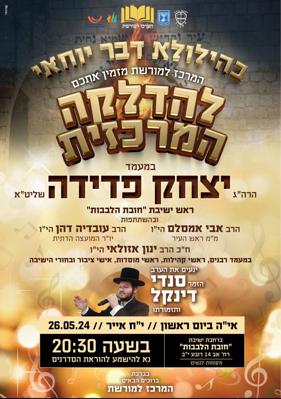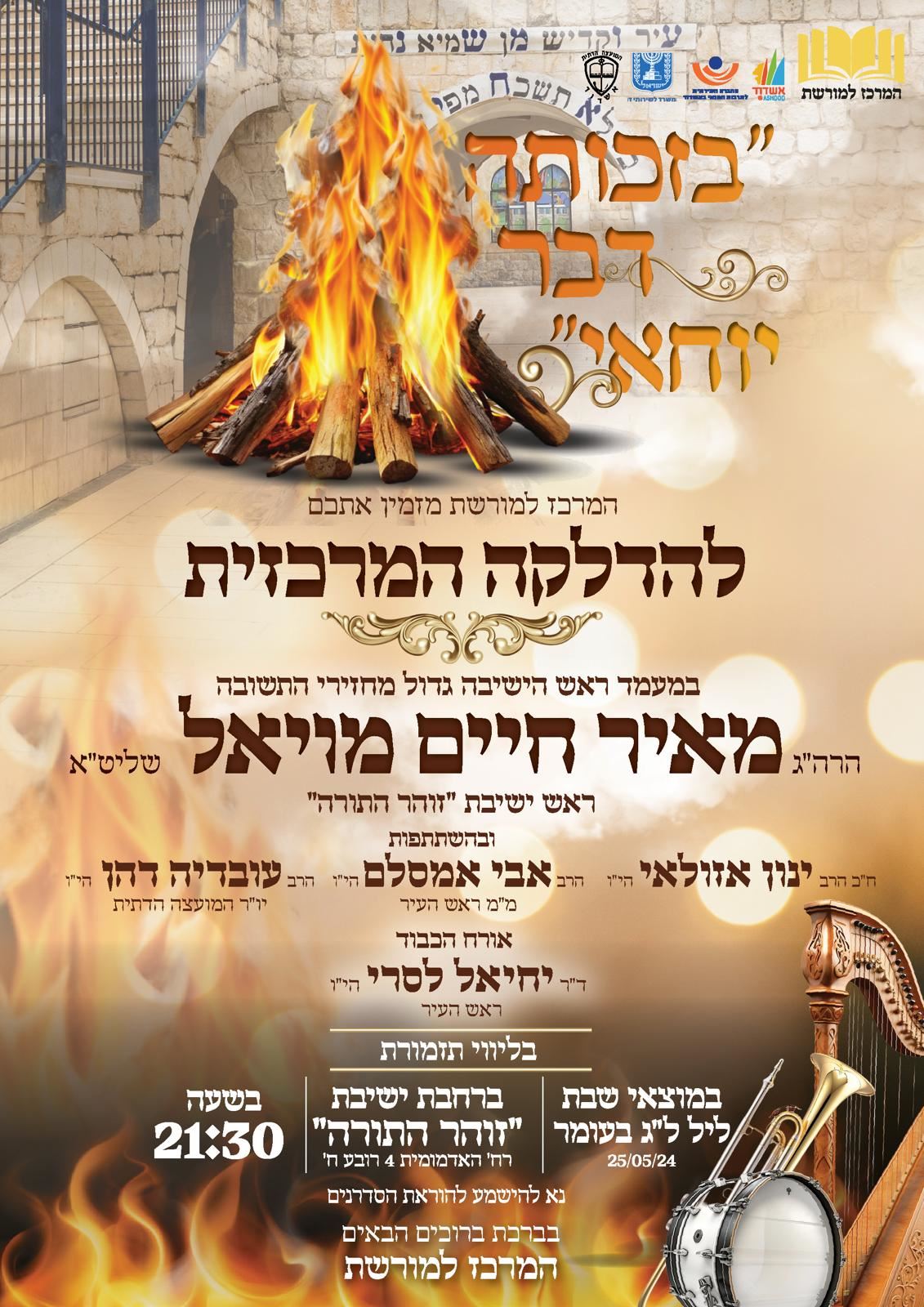 המסורת נמשכת: גם השנה, כבכל השנה, יערוך 'המרכז למורשת' ביוזמת ממ"ק רה"ע ר' אבי אמסלם שורה של הדלקות ובראשן ההדלקה המרכזית בראשות הגרד"ח פינטו שליט"א.