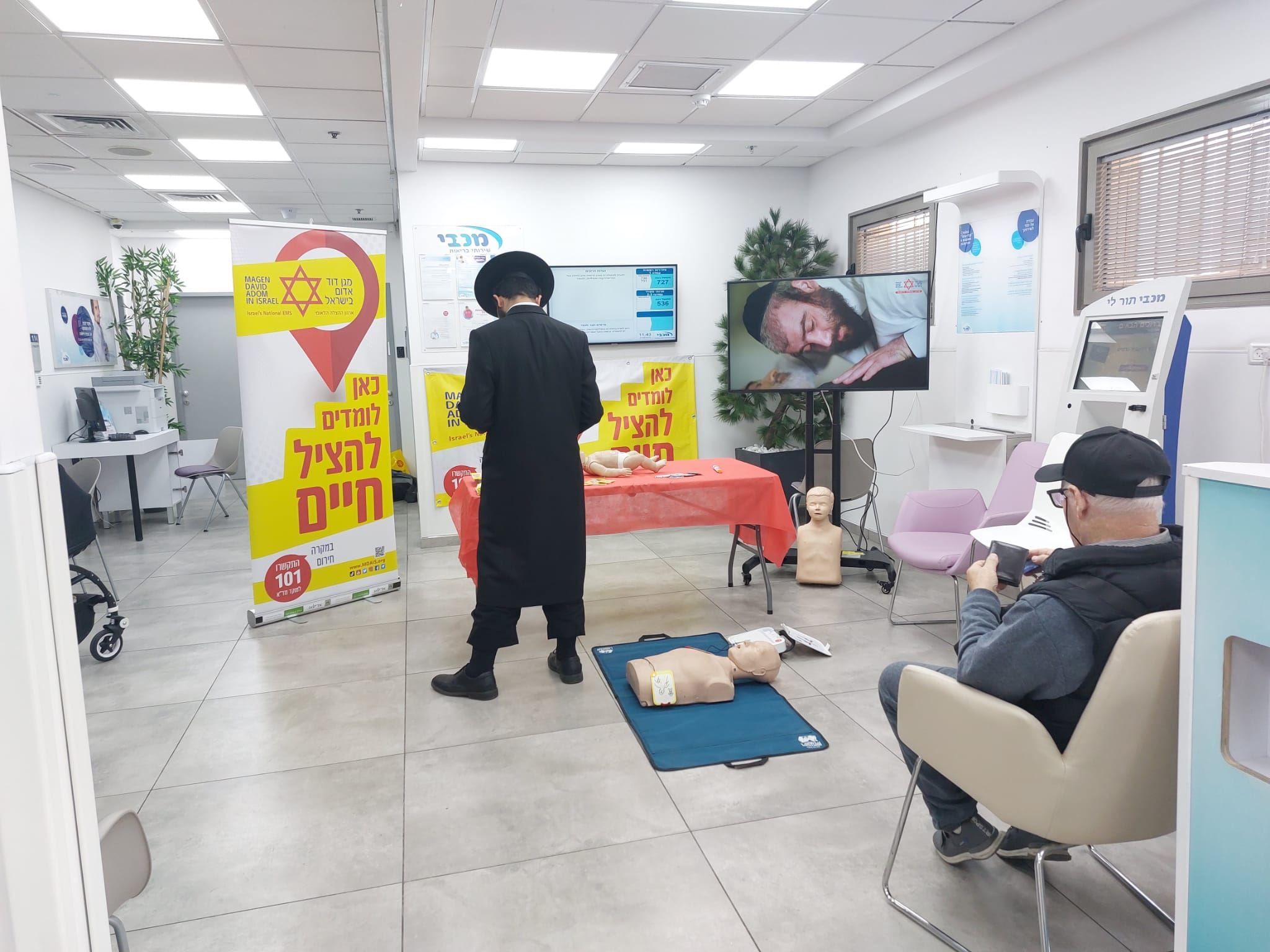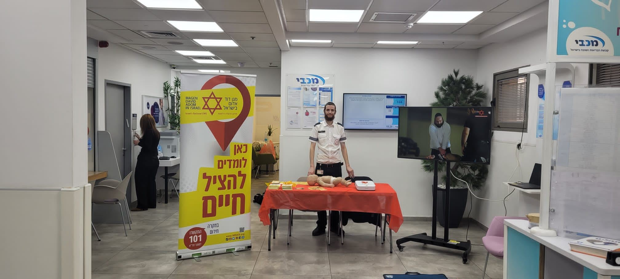 וגם בעיר, בשיתו"פ של מד"א - מכבי שירותי בריאות באשדוד, התקיימה היום הוצבה היום למשך שעות עמדת הדרכה והסברה ואמצעים והמחשה בסניף מכבי ברשב"י שהופעלה בידי אנשי מד"א ובראשם ר' אהרן ויינשטיין, מדריך וחובש בכיר במד"א, בכדי שבזמן אמת האזרחים ידעו מה לעשות בצורה מושלמת, ולהציל חיים!