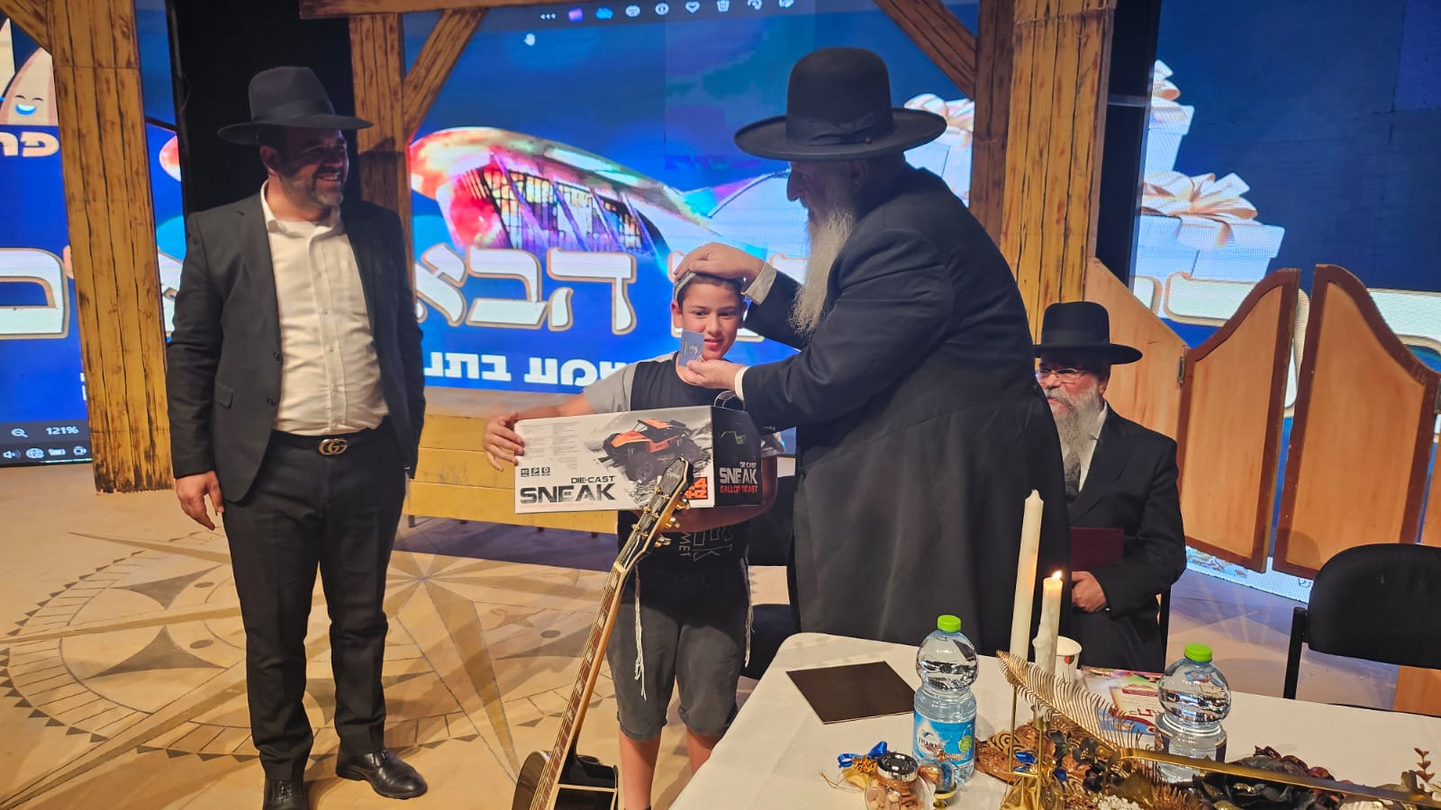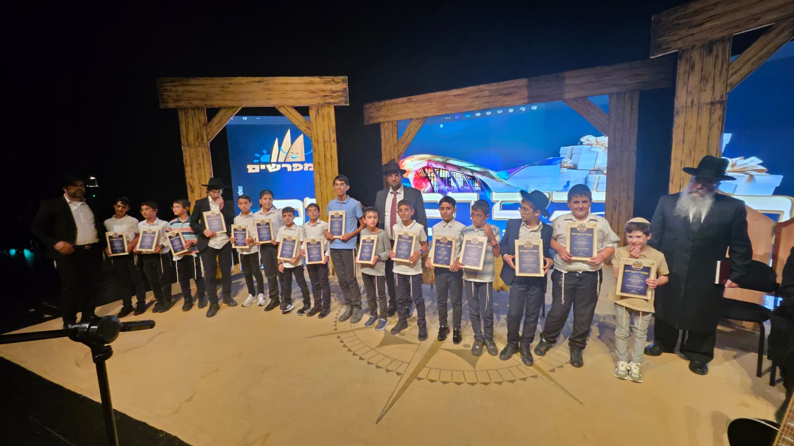 הילדים נהנו מקבלת פרסים יקרי ערך בעת ההגרלה הגדולה, כשלאחריה נהנו מהצגה מרתקת "הרב מהמערב" – מופע מיוחד מחזמר קומי רב משתתפים מבית עופר הלוי. בסיום הערב, מאות הילדים שבן עם הוריהם לביתם מתוך תחושה של חיזוק וההערכה גדולה והכנה לקראת חג מתן תורה עם שאיפה גדולה יותר ללימוד התורה במסגרת "אבות ובנים".