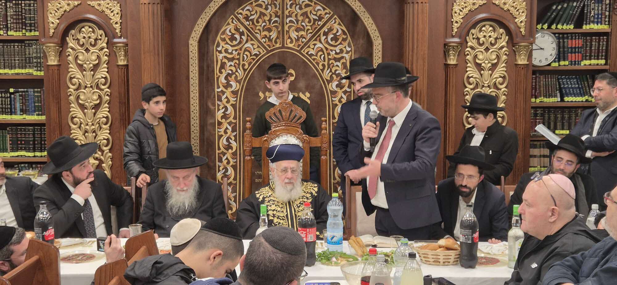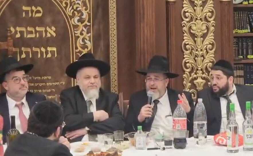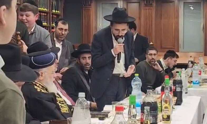 לצידו הגיע במיוחד לכבד את המעמד הגאון הגדול הרב פנחס ברופמן שליט"א ראש ישיבת "תלמוד מאיר" והרבנים הגאונים ראשי החבורה בכול החשוב.