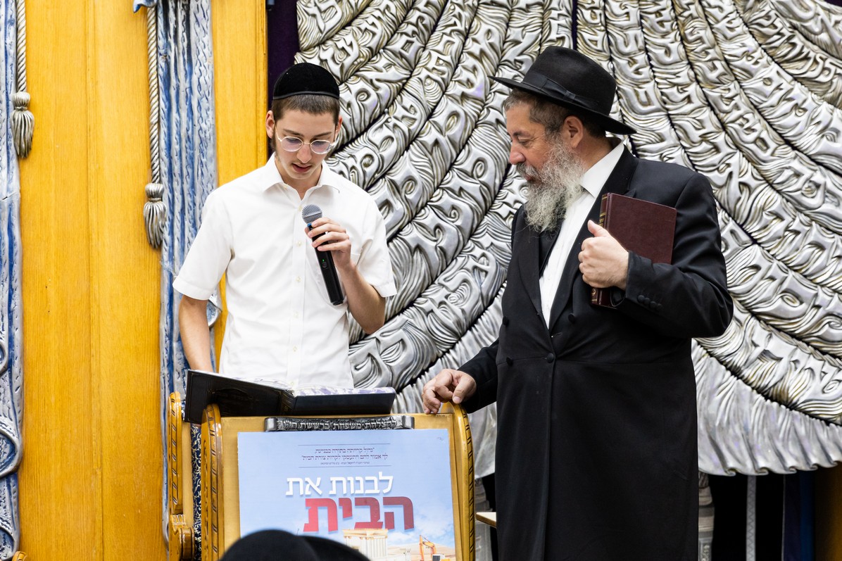 סיום מסכת שקלים נערך על ידי רב השכונה השליח הרב מרדכי מנשה לאופר, שנשא תפילה שאירוע חשוב זה יהווה סיום לחושך הגלות ויביא את אור הגאולה במהרה.