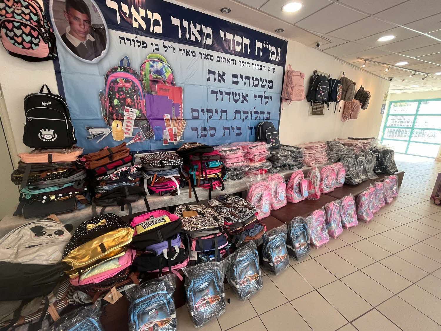 לקראת פתיחת שנת הלימודים הנוכחית, בארגון החסד "חסדי מאור מאיר" במשך כשבוע ימים עמלו ללא ליאות מתנדבים ומתנדבות וחילקו כ-500 ילקוטים וציוד מכשירי כתיבה לבית הספר לתלמידים ברחבי העיר.