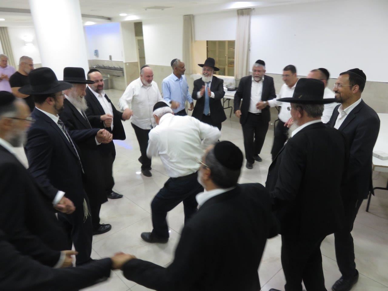 לאחר הדברים, הציבור קם ממקומותיהם ופצחו במעגלים מתוך התרוממות ושמחה, במעגלים לקח הרב הראשי הגר"י שיינין את הרב עובדיה דהן לרקוד עימו ביחידות, כך גם הגר"מ אבוחצירא, כשכולם פתחו מעגל ענק ושמחים לכבודה של תורה.