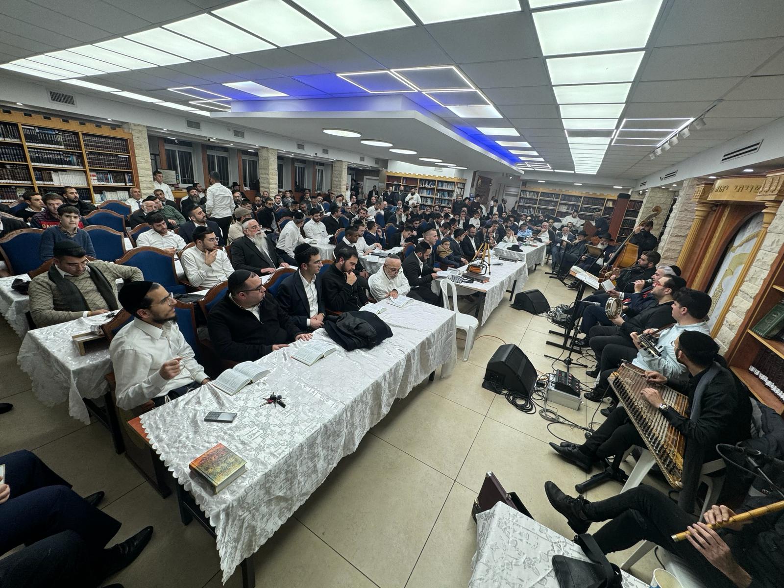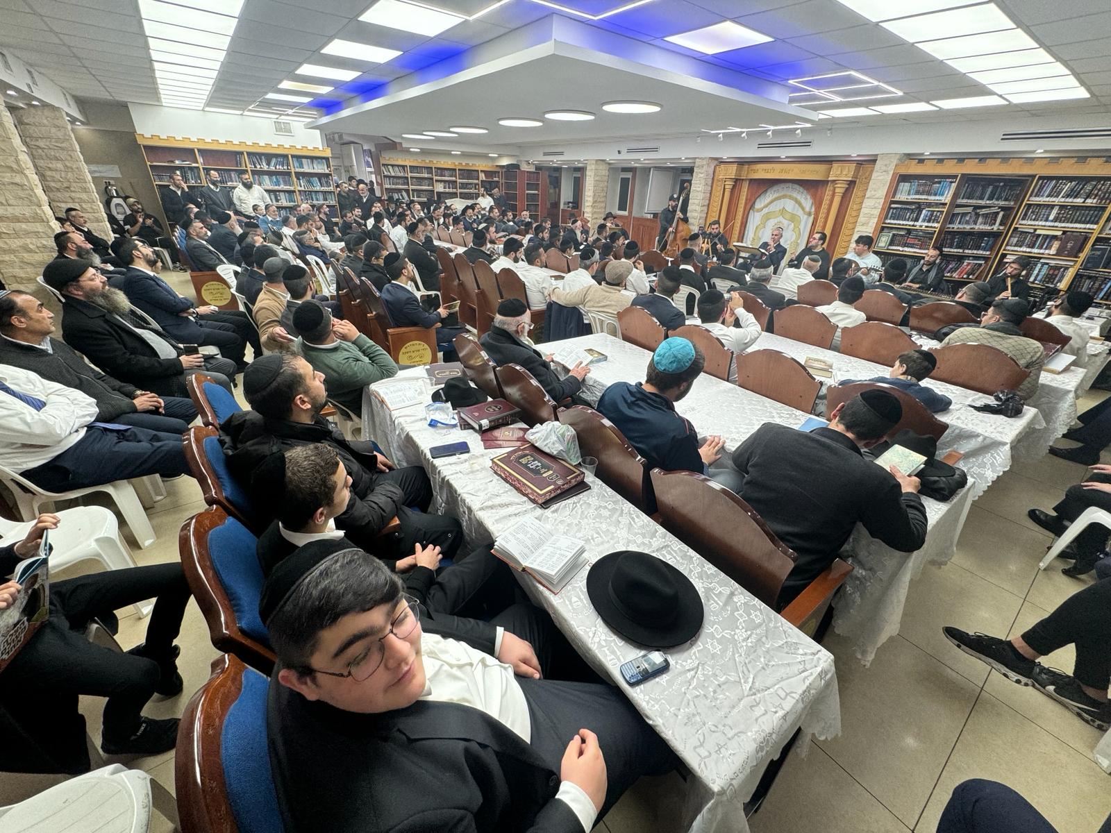 בית המדרש המרכז לצעירים "ילדי שגיא ויעקב" היה מלא עד אפס מקום, כשרבים אחרים עומדים במעברים ובמדרגות הכניסה כדי להשתתף בשירת הבקשות עם עוד שירים ופיוטים.