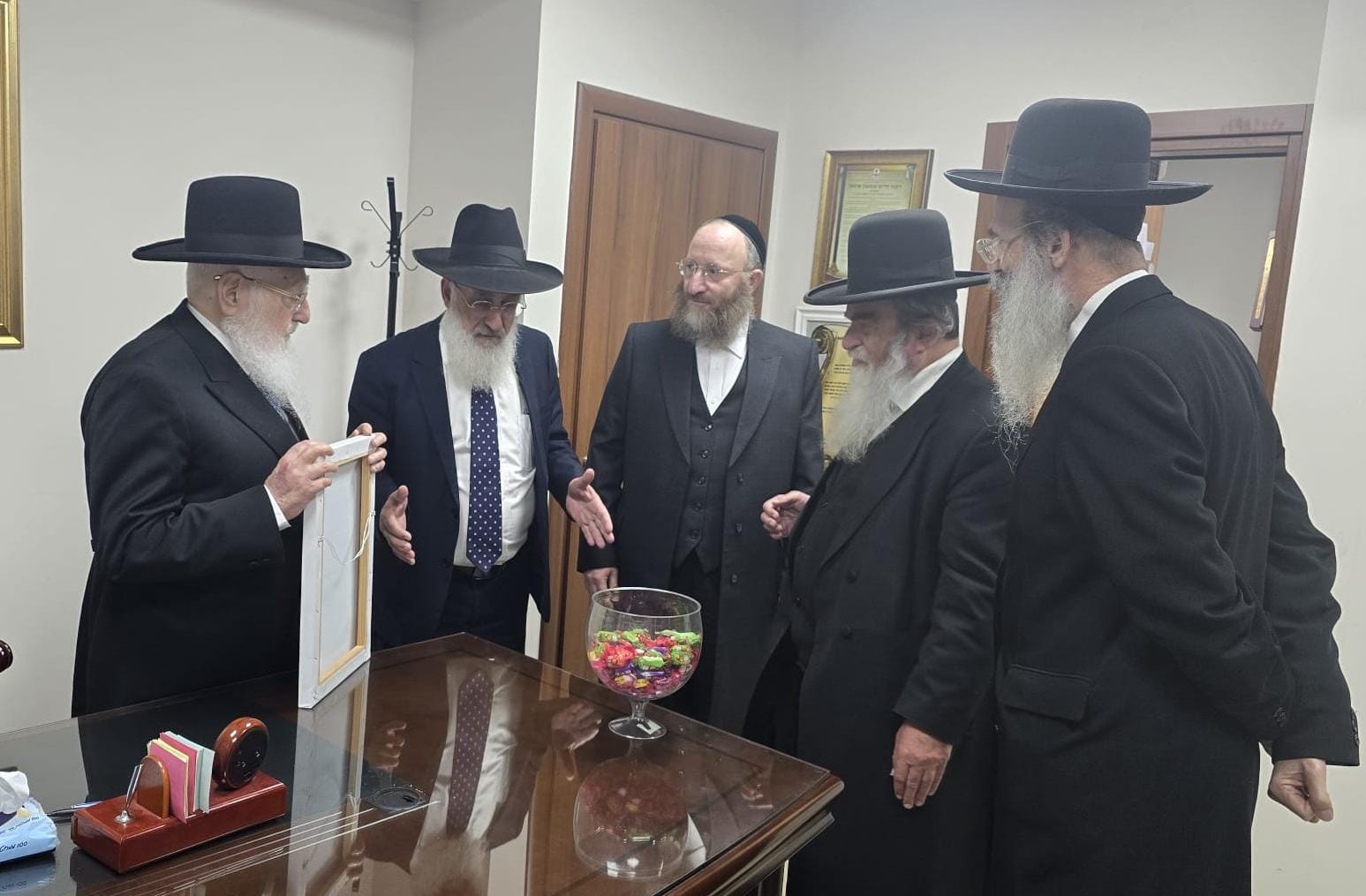 טקס הענקת התעודה התקיים בלשכת המרא דאתרא בנש"ק הגה"צ רבי חיים שמעון פינטו שליט"א, אשר העריף דברי שבח וקילוס רבים לרב פונפנדר על מסירותו הרבה לכבודה של השבת בעירנו.