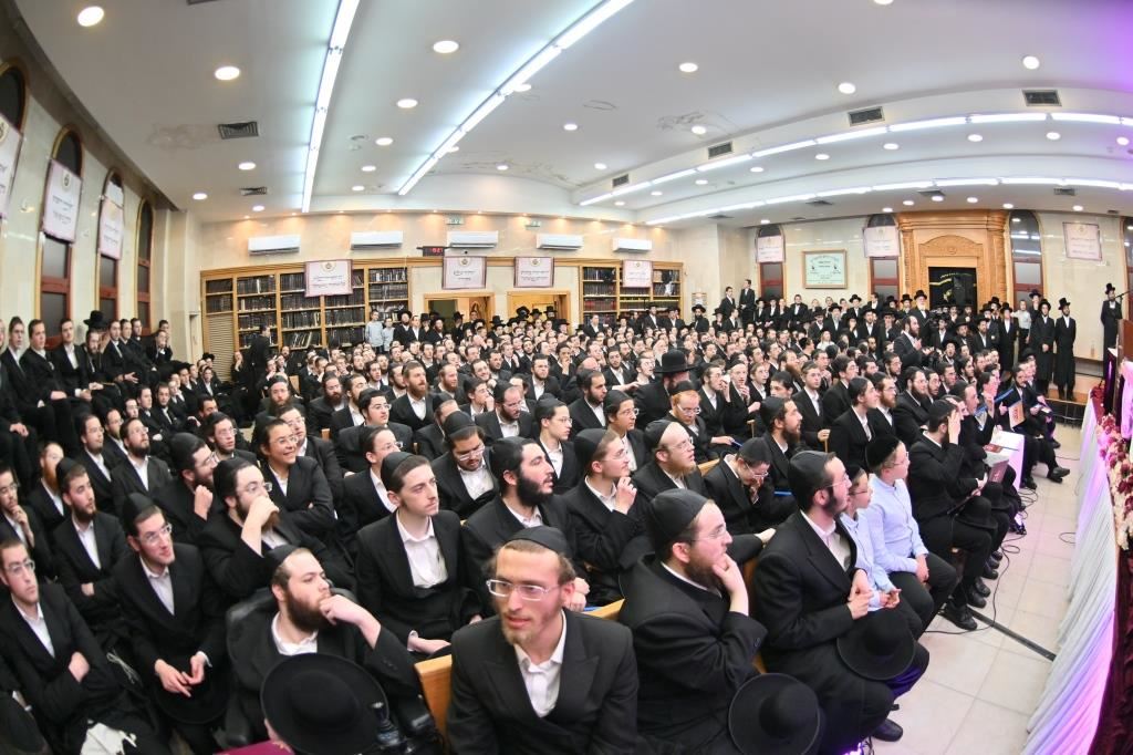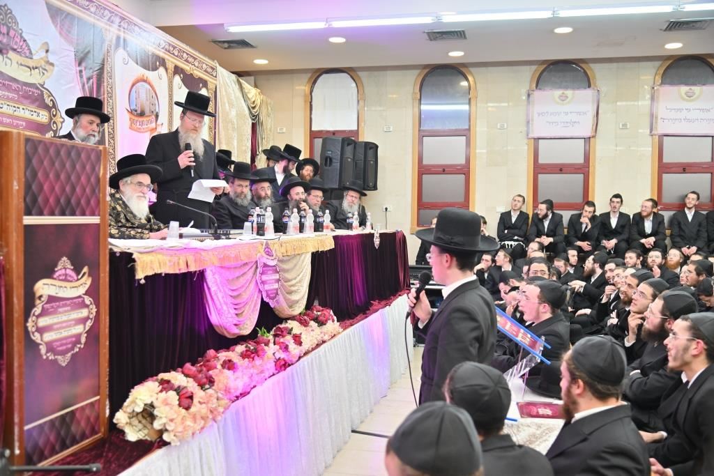 בהמשך דבריו כיבד את הרה"ג חגי משה צין רב חסידי ויז'ניץ באשדוד לבחון את הבחורים על כל מסכתות הש"ס.