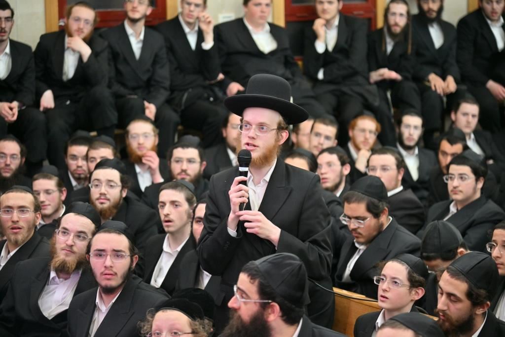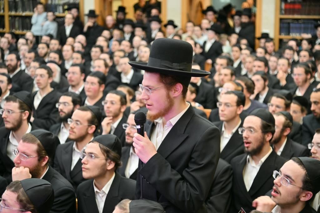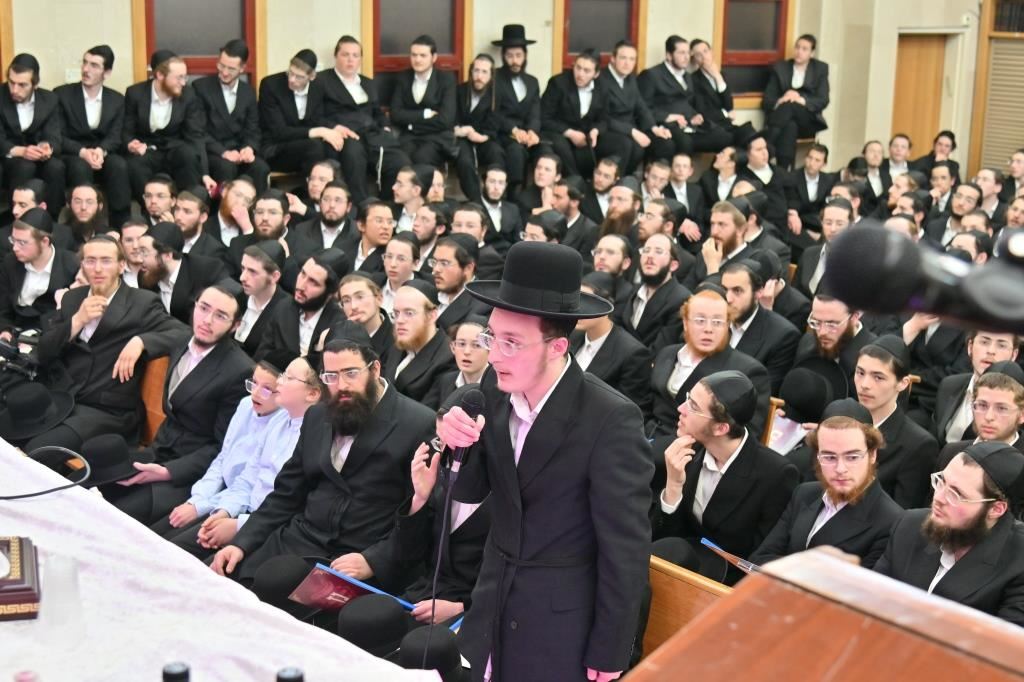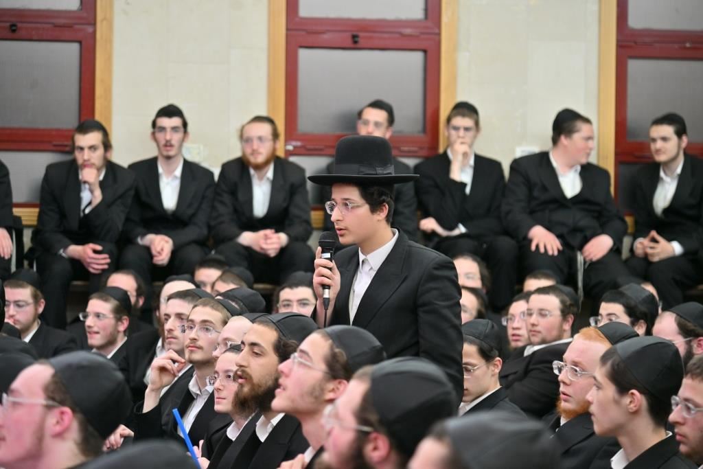 במשך זמן ארוך נבחנו הבחורים כבסיומו הפליא כ:ק האדמו"ר שליט"א במאד את ידיעותיהם המחכימות של הבחורים וקרא עליהם את דברי הגמרא 'שימה בפיהם – שיהיו דברי תורה מחודדים בפיך שאם ישאלך אדם אל תגמגם'.