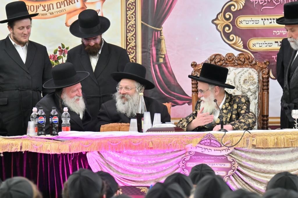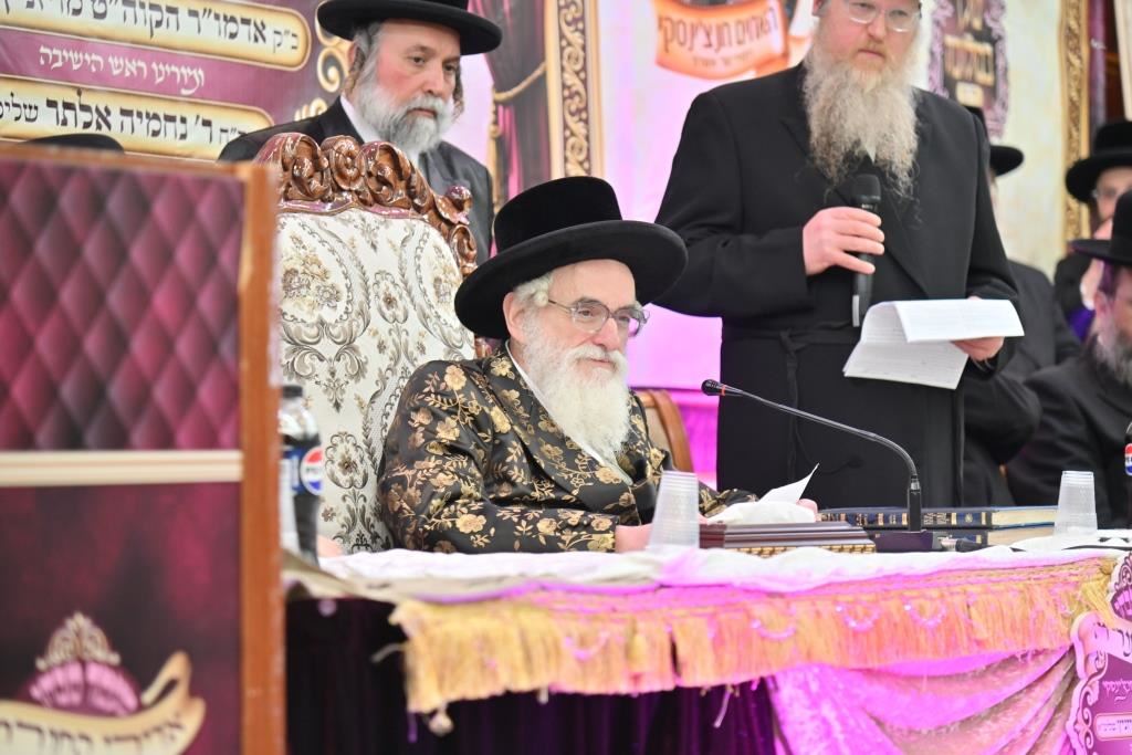 בשעות הערב הופיע כ"ק האדמו"ר שליט"א בישיבה, כשאת פניו מקבל ראש הישיבה הרה"צ נחמיה אלתר שליט"א בן כ"ק האדמו"ר מגור.
