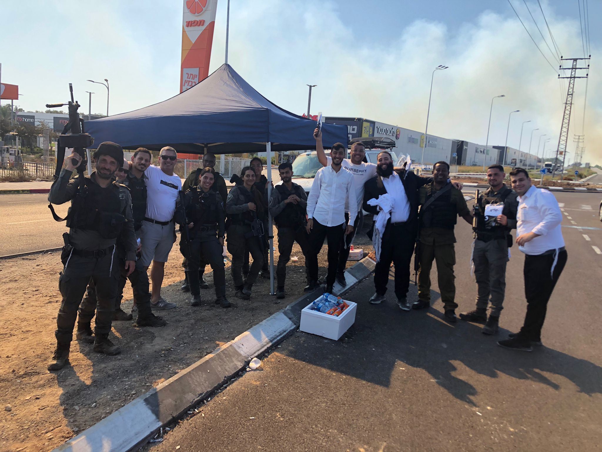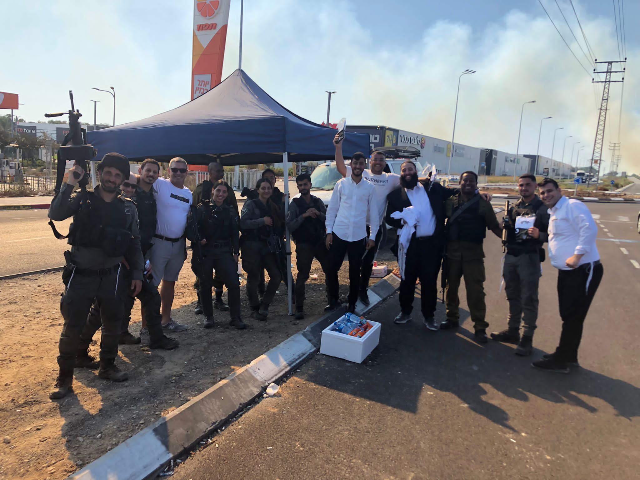 קבוצה של מתנדבים אשדודים יצאו לבסיסי צה"ל הסמוכים שם חילקו ציציות ושתיה קרה לחיילים העומדים להיכנס לחזית.