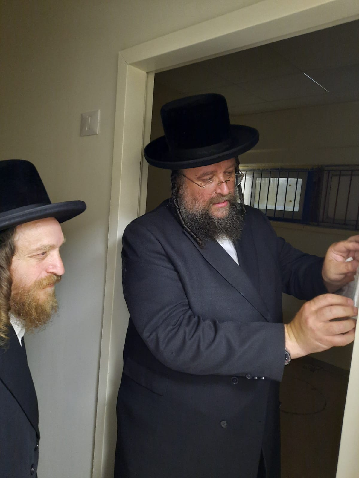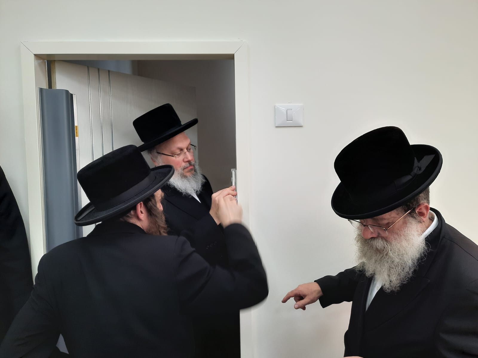 לצידו כובדו בקביעת המזוזות מנכ"ל המוסדות הרב אריה זלצר, וכן מי שמוסר את נפשו בשליחותו למען המוסדות – חבר מועצת העיר הרב אפריים וובר.
