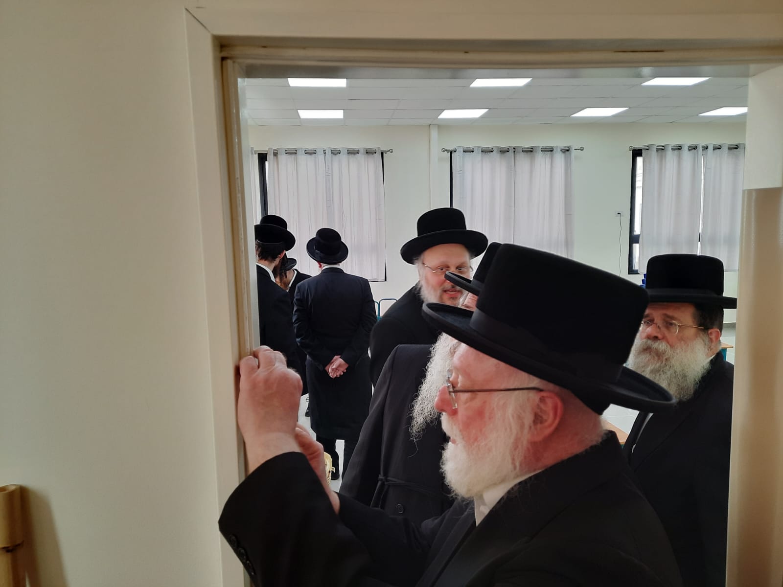 הדיין הבעלזאי קבע מזוזות בפתח הגן ה-13 של 'בית מלכה'