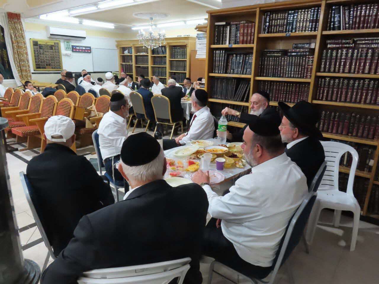 במוצאי שבת, משתתפי השיעור הקבוע במסגרת הלימוד בדף היומי בבית הכנסת חניכי הישיבות "בית יוסף" חגגו סיום על מסכת "מכות" באולם בית הכנסת חניכי הישיבות "בית יוסף" בקרית פונוביז' רובע ג'.