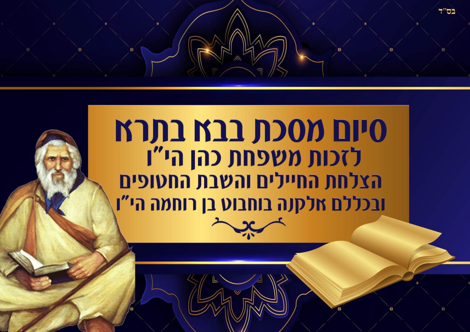מעמד סיום מסכת בבא קמא הוקדש ע"י בעל ההילולא להשבת החטופים ובכללם אלקנה בוחבוט בן רוחמה הי"ו