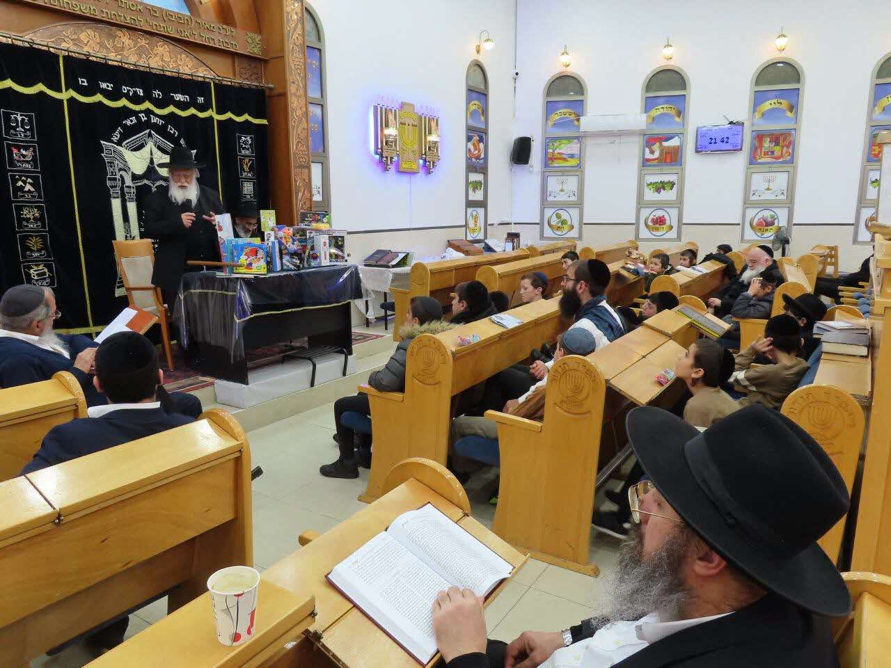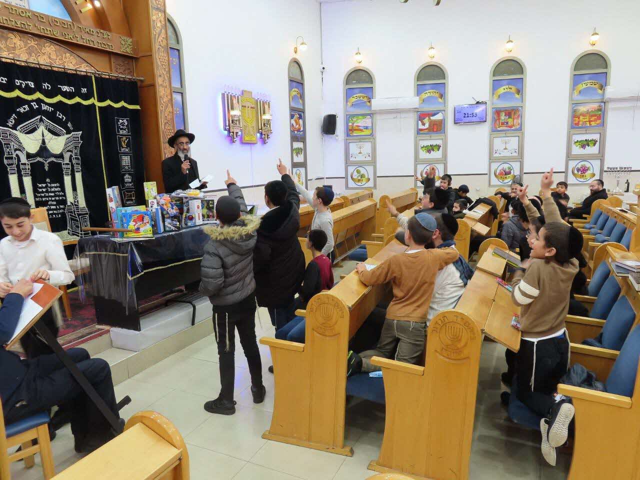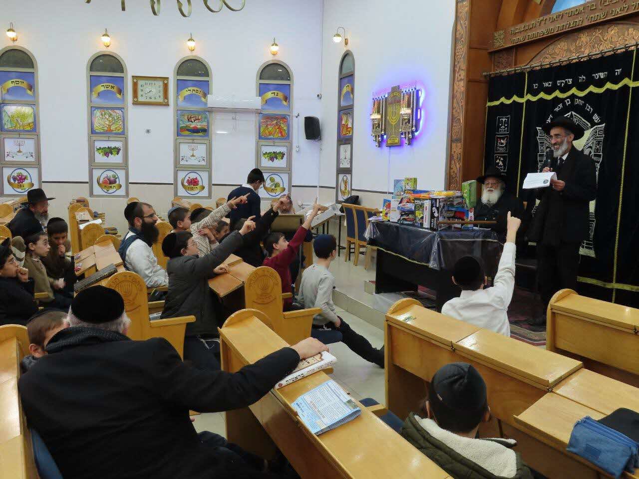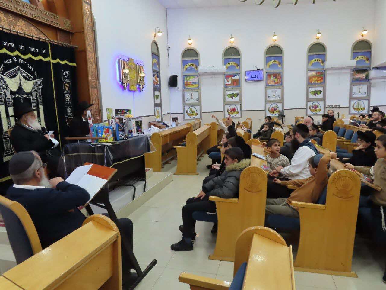הילדים ענו כולם תשובות בחידון חנוכה: בבית כנסת הריב"ז ערכו מסיבת חנוכה במעמד הגר"מ כהן שהביע את שמחתו על הידע המופלא של ילדי 'אבות ובנים' | הרב חיים אמסילי חבר מועצת העיר קצר ברכות ושבחים במעמד